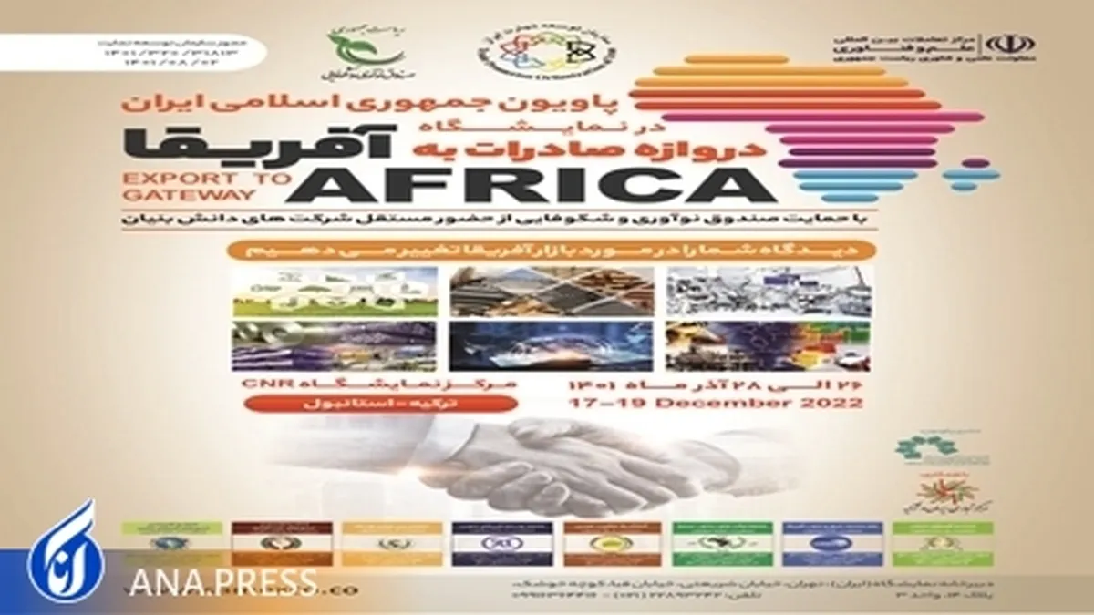 ووفقاً لوكالة آنا الإخبارية، أعلن مركز التفاعلات الدولية للعلوم والتكنولوجيا التابع لمقر رئيس الجمهورية للعلوم والتكنولوجيا والاقتصاد القائم على المعرفة بالتعاون مع صندوق الابتكار والازدهار، عن تحضير الجناح الإيراني المقرر مشاركته في المعرض بتركيا لعرض المنتجات والخدمات الإيرانية على رجال الأعمال في السوق الأفريقية.