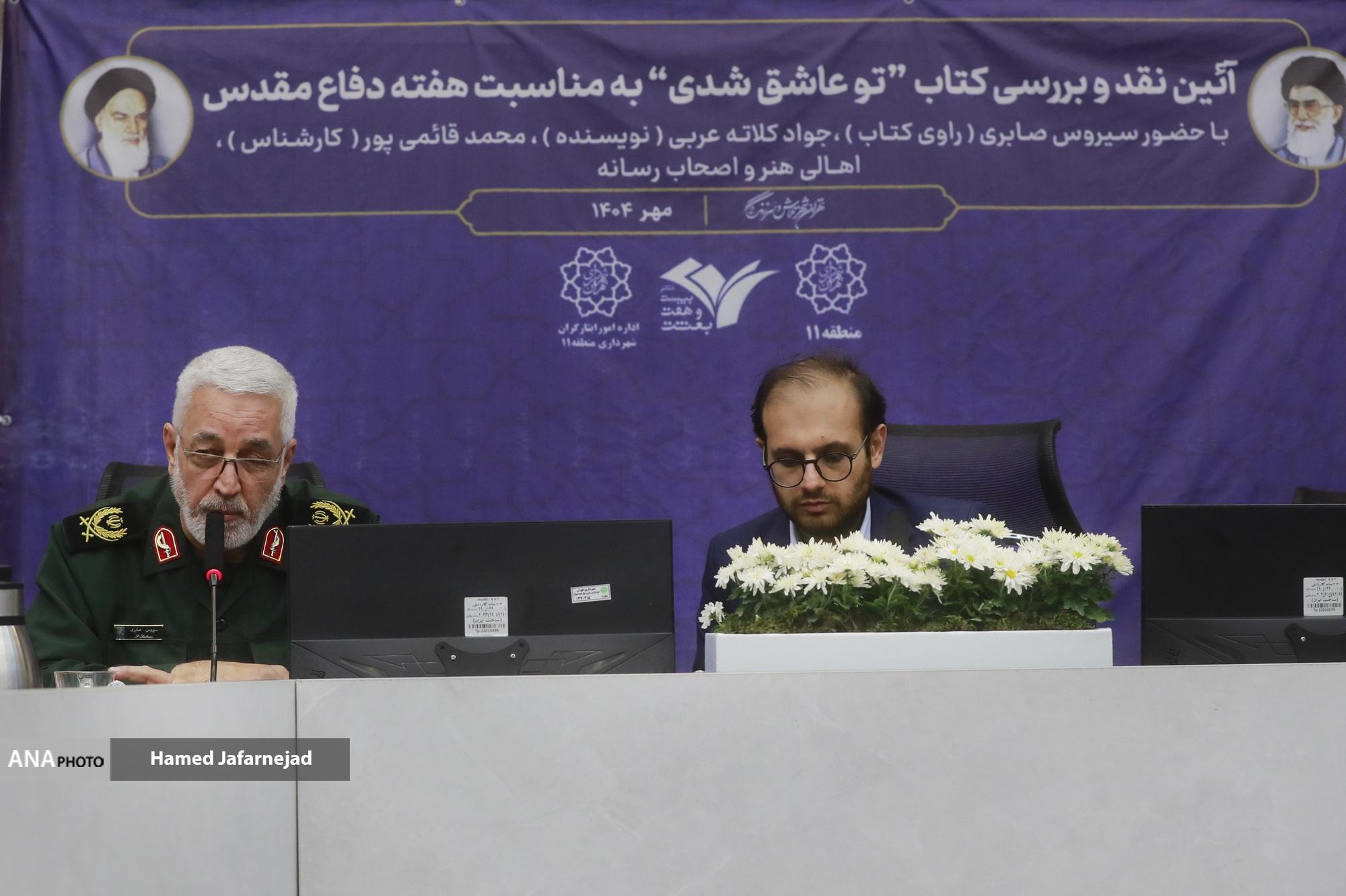 همزمان با هفته دفاع مقدس آیین رونمایی و نقد و بررسی کتاب «تو عاشق شدی» مجموعه خاطرات شفاهی سردار سیروس صابری از روزهای دفاع مقدس و نبردهای رزمندگان ایرانی عصر امروز دوشنبه 7 مهرماه1404 به همت اداره ایثارگران شهرداری منطقه ۱۱ برگزار شد.این کتاب به قلم جواد کلاته عربی و آزاده جهان احمدی به رشته تحریر درآمده است.سیروس صابری از راویان در قید حیات دوران دفاع مقدس و جانشین فرماندهی سپاه تهران بزرگ است. او در طول سال‌های جنگ، فرمانده گردان‌های عمار و جعفر طیار لشکر ۲۷ محمدرسول‌الله (ص) بود که ۲۰ ساعت گفتگوی مجید محمدولی، پژوهشگر دفاع مقدس با او، دستمایه تهیه و تولید این کتاب شده است