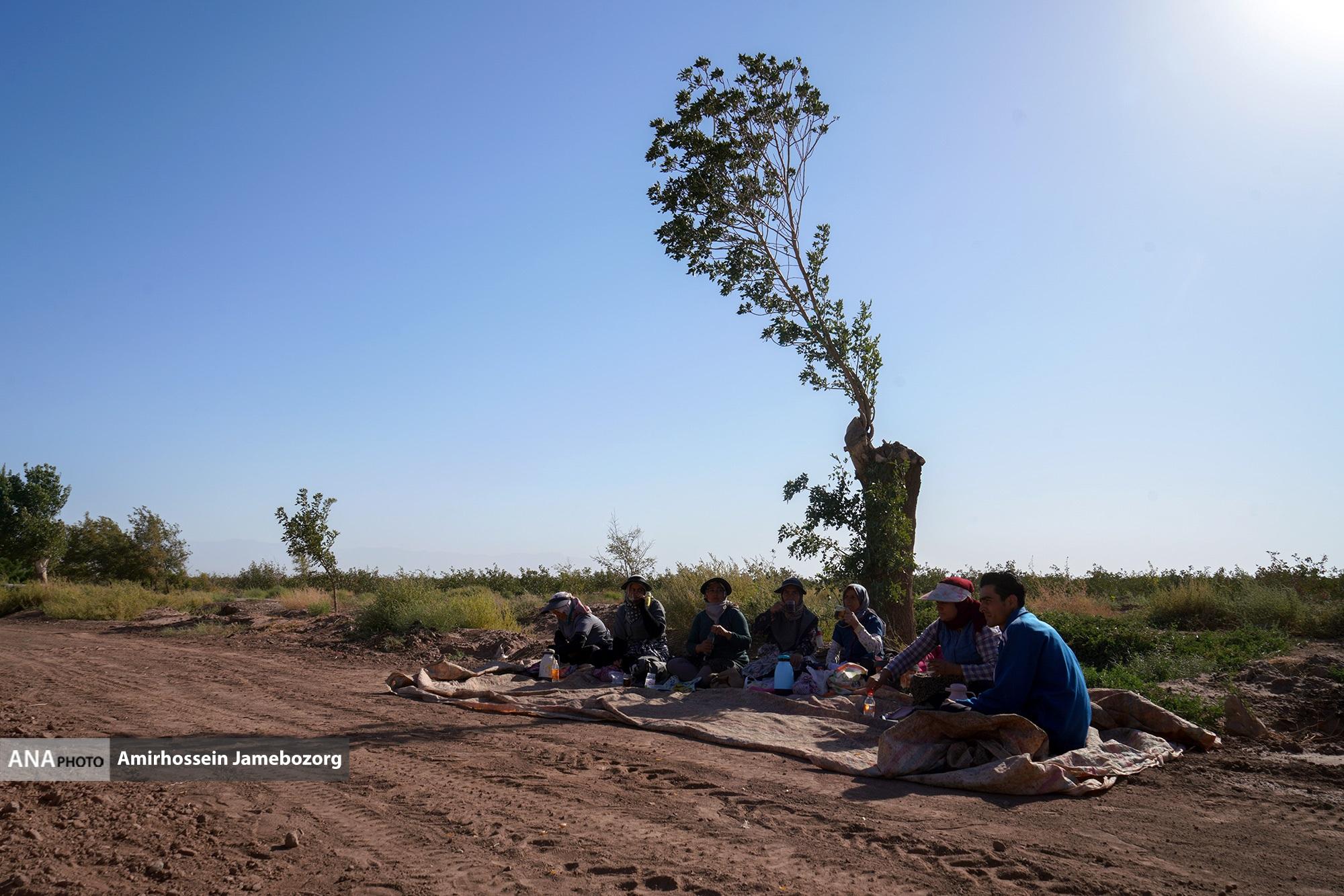 مقدار سطح اراضیای که پسته از آن برداشت میشود ۱۵۰ هکتار است و برای ۵۰۰۰ نفر اشتغالزایی شده است که از این تعداد حدود ۴۰۰۰ نفر از زنان بومی و سرپرست خانوار هستند. پسته برداشتشده پس از بارگیری به محل ترمینال فرآوری پسته به منظور انجام عملیات فرآوری و سورتینگ حمل و سپس به منظور فروش از طریق مزایده در موعد مقرر به محل سردخانه طرف قرارداد بارگیری و حمل میشود. سود حاصل از باغات پسته در مسیر محرومیتزدایی و آبادانی مناطق محروم صرف میشود.