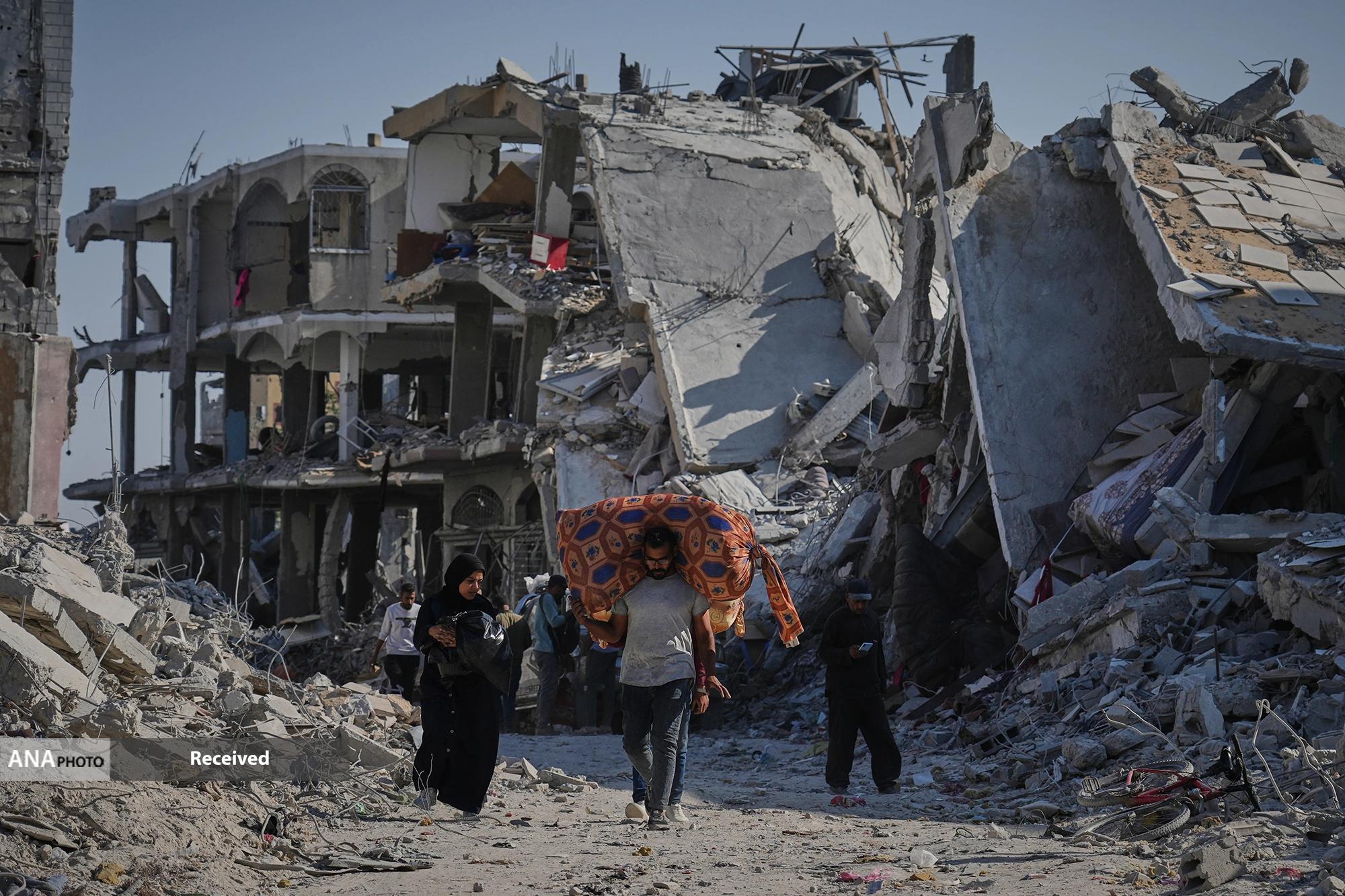 مردم آواره فلسطین با شروع آتشبس غزه،بازگشت خود را به خانه آغاز کردند. مردم غزه با با کمبود شدید مایحتاج مواجه هستند.سازمان ملل متحد بر لزوم اقدام فوری برای رسیدگی به شرایط قحطی تأکید میکند و این امر مستلزم ورود هزاران کامیون کمکرسانی به این منطقه جنگزده در هر هفته است.