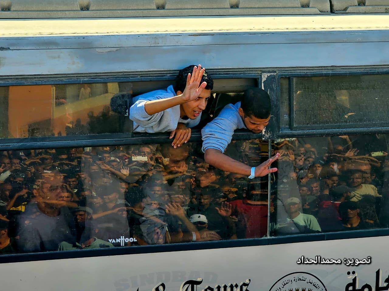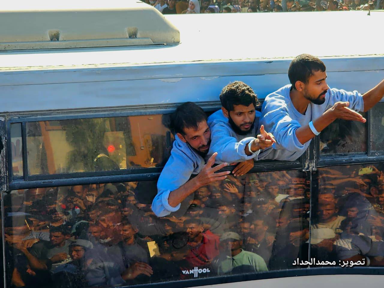 همچنین، اتوبوسهای اسرای آزادشده به خانیونس در جنوب غزه رسیدند و با استقبال گرم خانوادهها مواجه شدند.