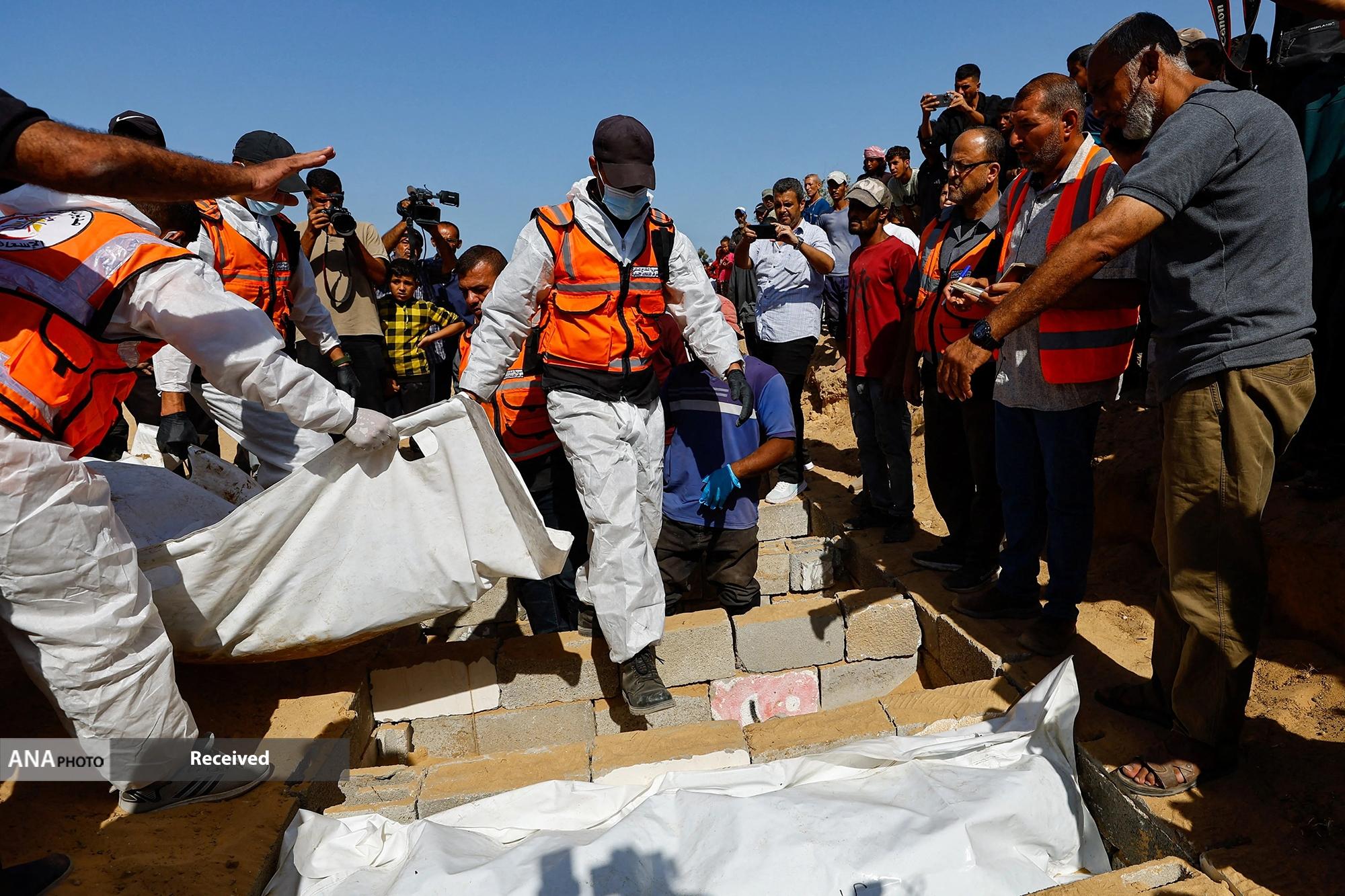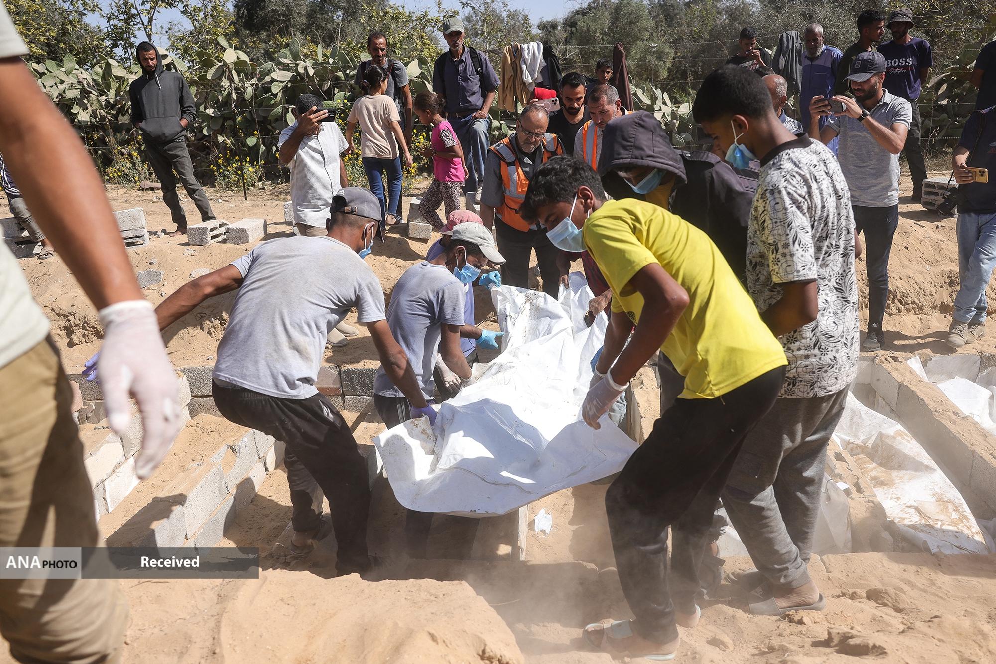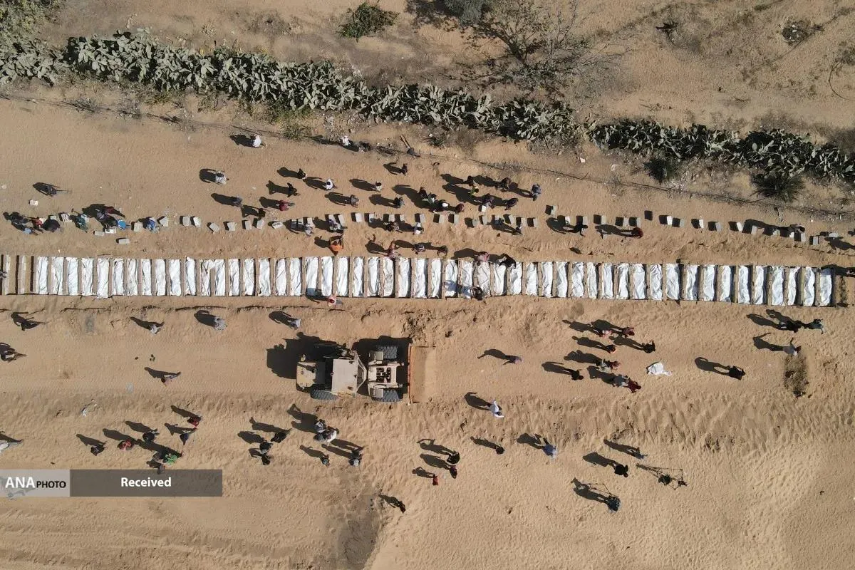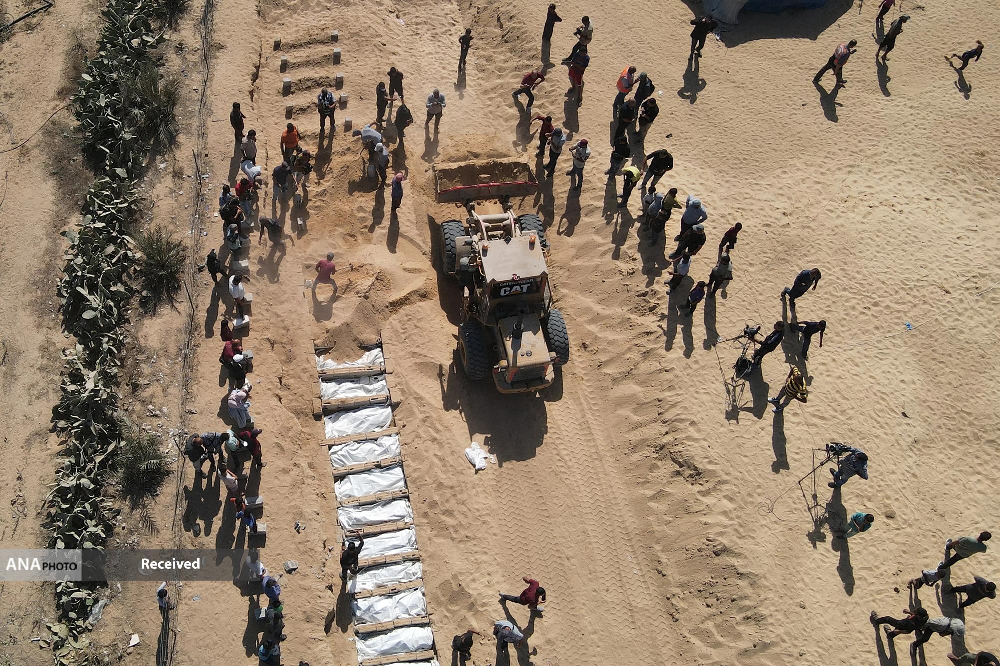 مراسم تشییع شهدای فلسطینیناشناس و اجساد بازگردانده شده توسط رژیم صهیونیستی در غزه برگزار شد.در میان غم و اندوه، مراسم تشییع پیکر شهدای به یاد فلسطینیهای متوفی برگزار شد، زیرا اجساد بسیاری از آنها به قدری مثله شده بودند که قابل شناسایی نبودند - در گورهای دسته جمعی در دیر البلح دفن شده بودند.