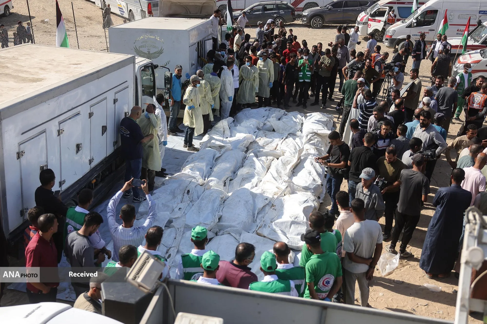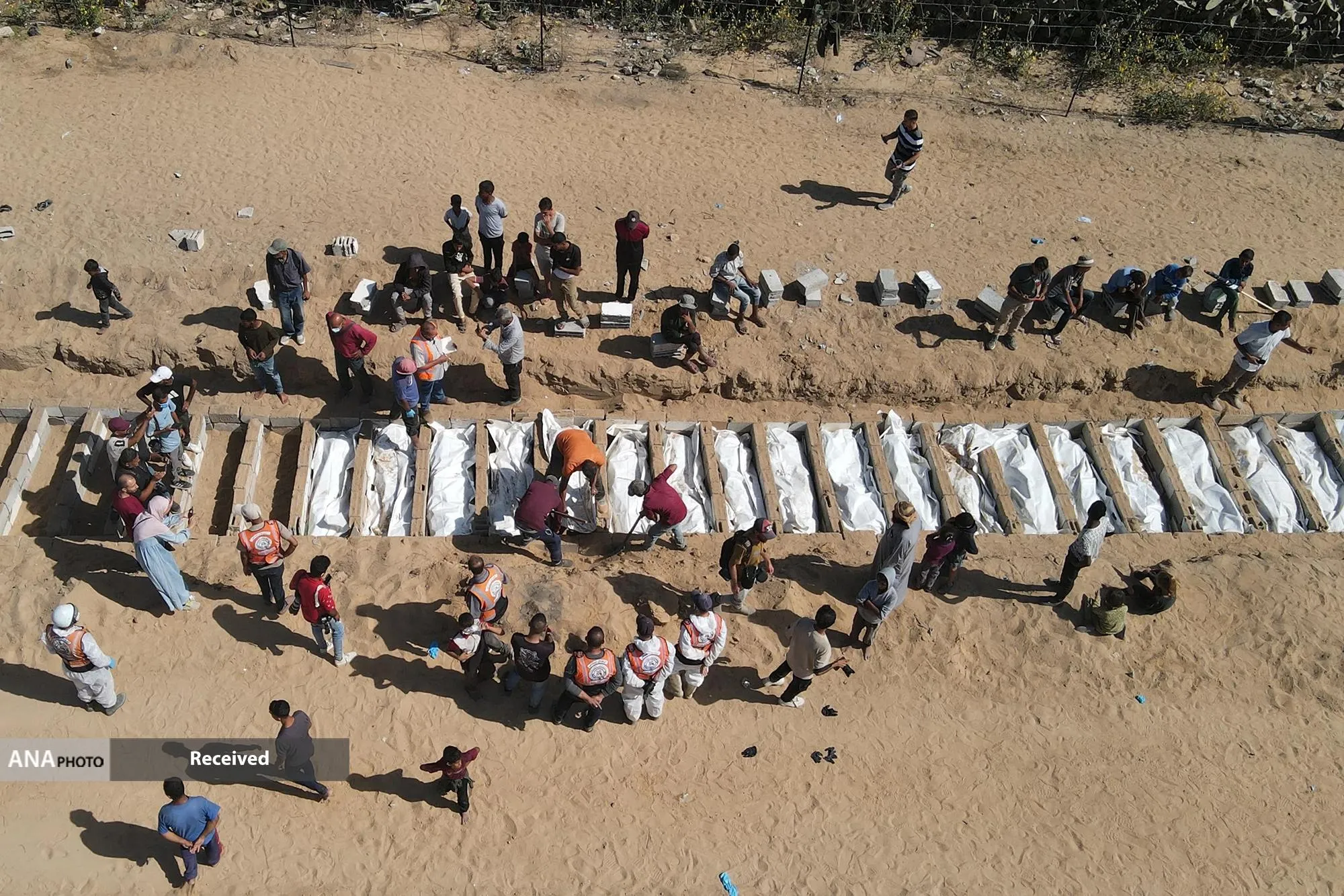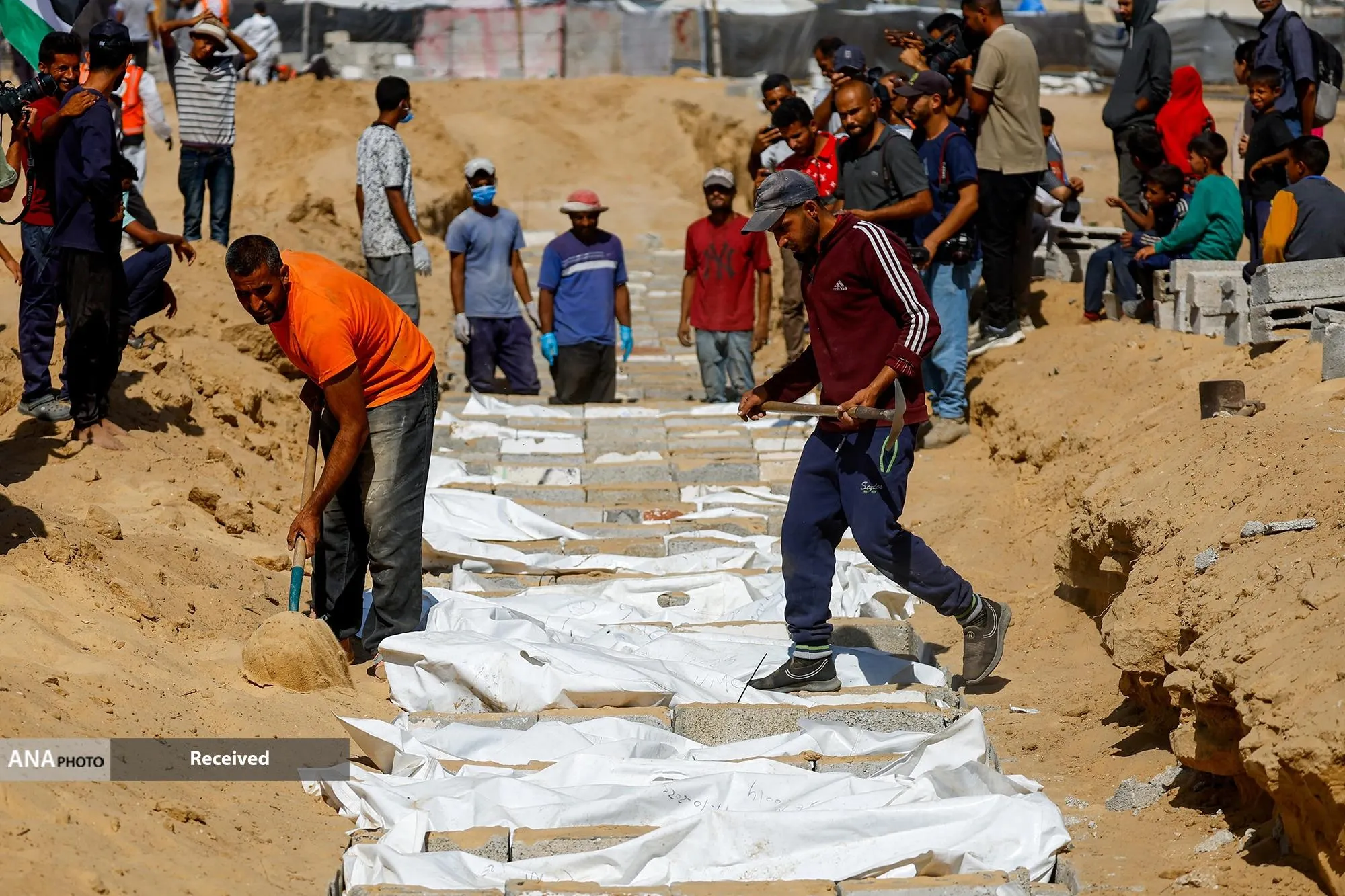 مراسم تشییع شهدای فلسطینیناشناس و اجساد بازگردانده شده توسط رژیم صهیونیستی در غزه برگزار شد.در میان غم و اندوه، مراسم تشییع پیکر شهدای به یاد فلسطینیهای متوفی برگزار شد، زیرا اجساد بسیاری از آنها به قدری مثله شده بودند که قابل شناسایی نبودند - در گورهای دسته جمعی در دیر البلح دفن شده بودند.