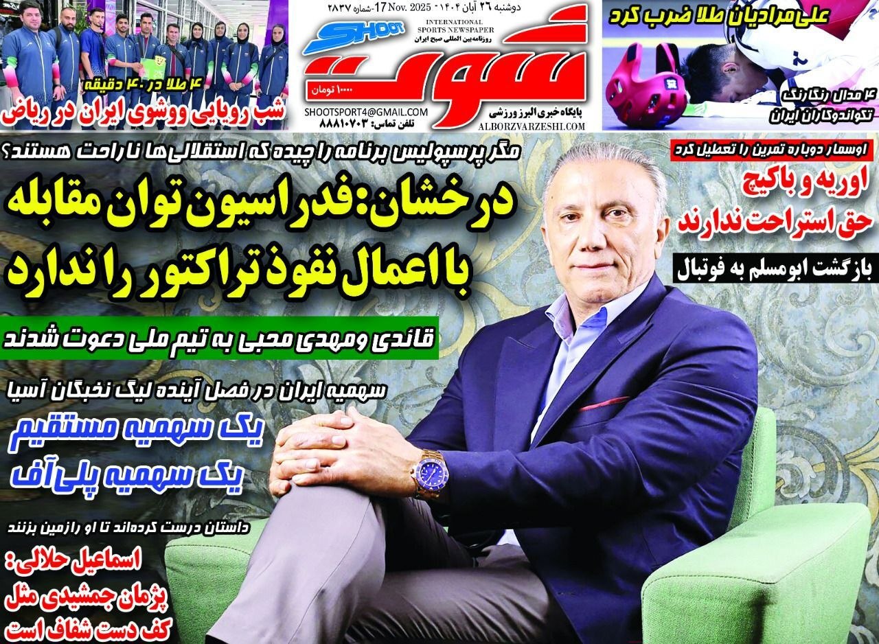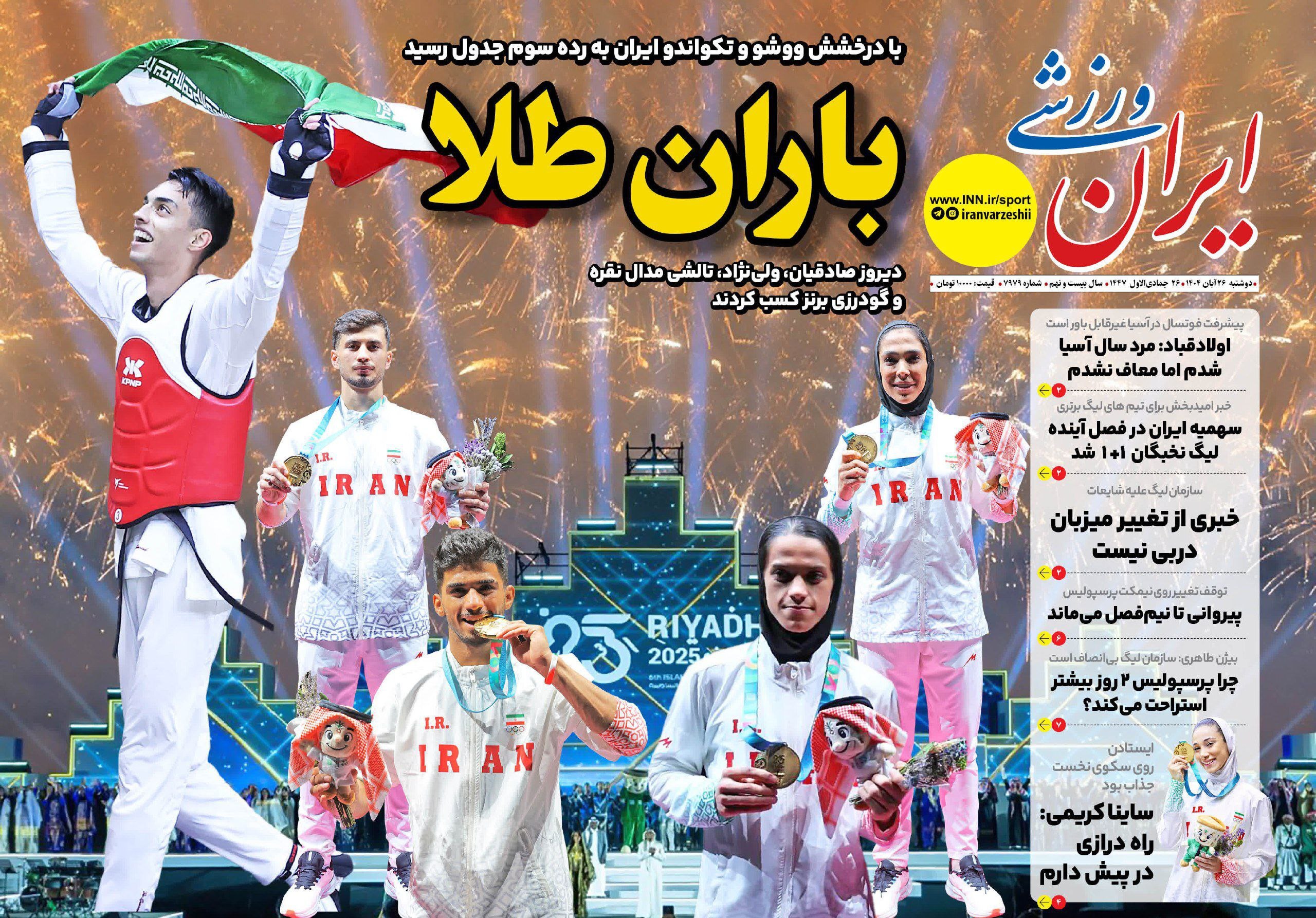 روزنامههای ورزشی دوشنبه ۲۶ آبان ماه ۱۴۰۴