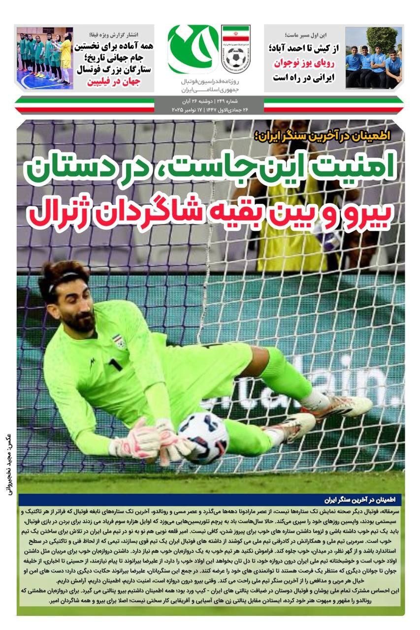 روزنامههای ورزشی چهارشنبه ۲۶ آذر ۱۴۰۴
