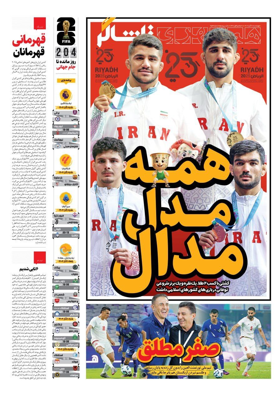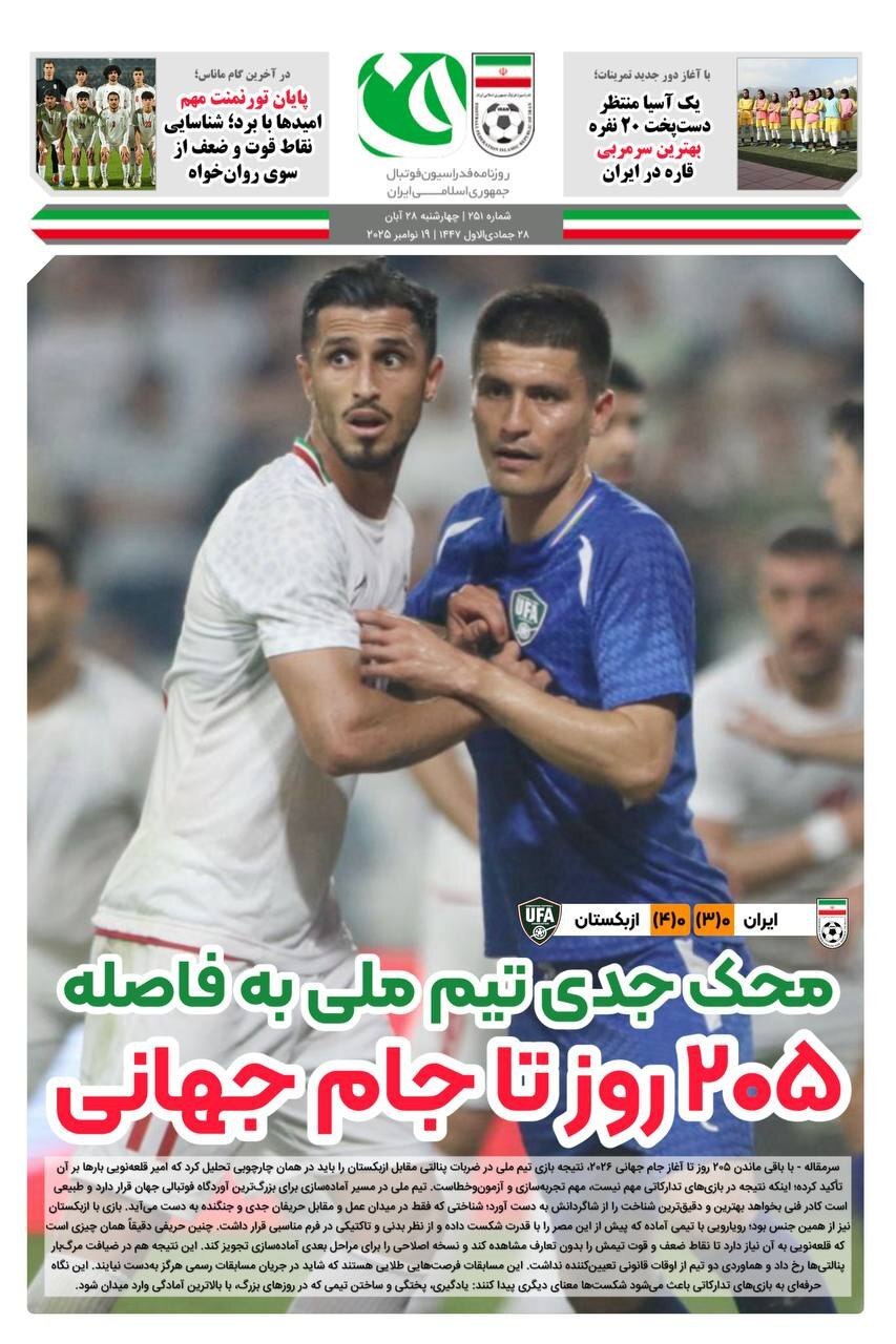 روزنامههای ورزشی چهارشنبه ۲۸ آبان ماه ۱۴۰۴