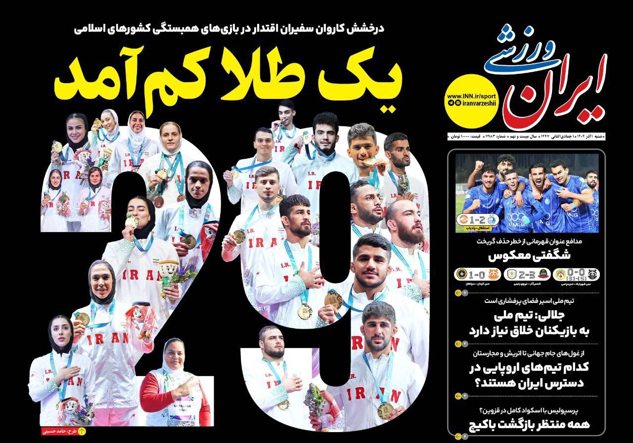 روزنامه های ورزشی شنبه ۲۲ آذر ماه ۱۴۰۴
