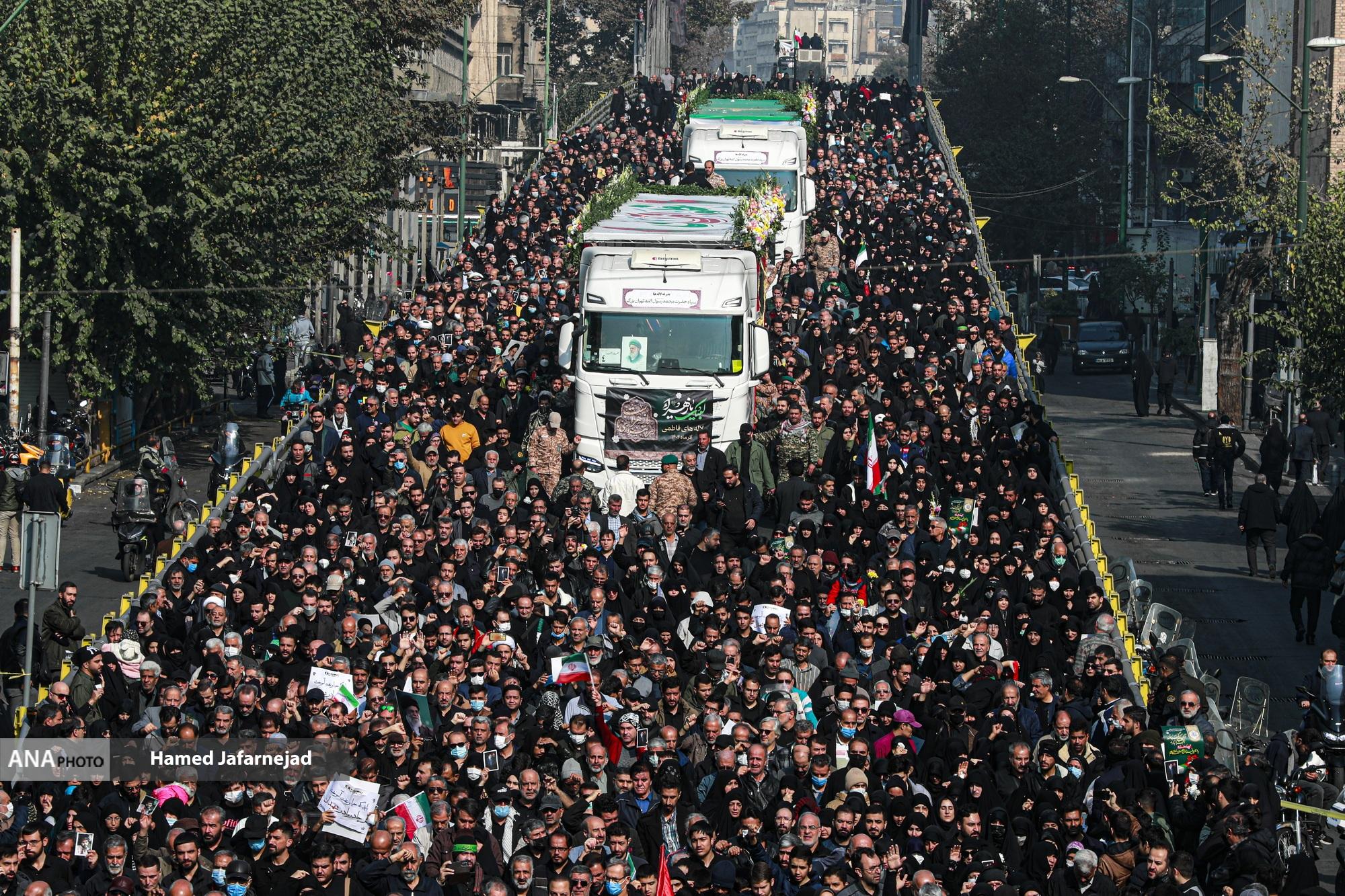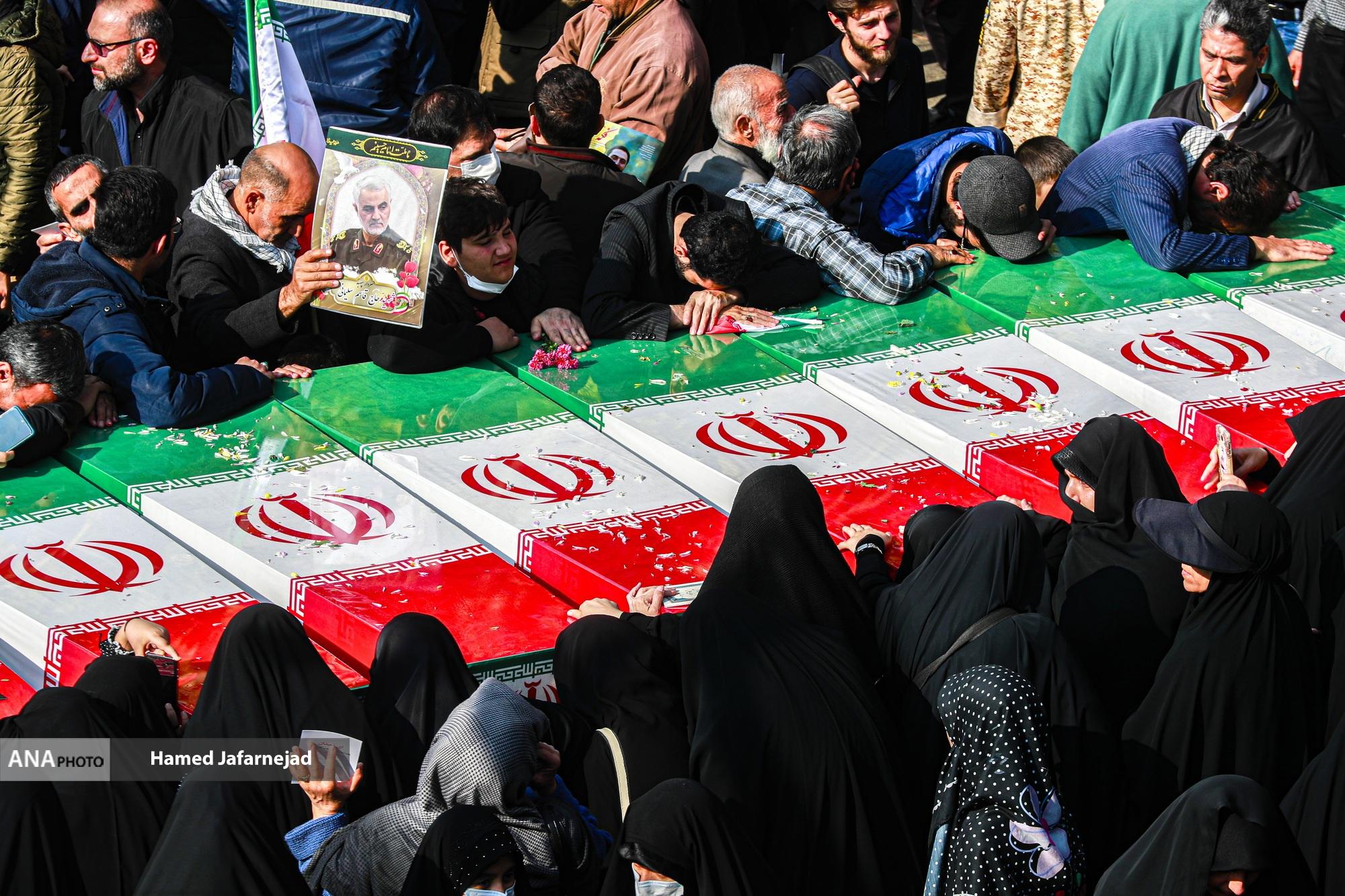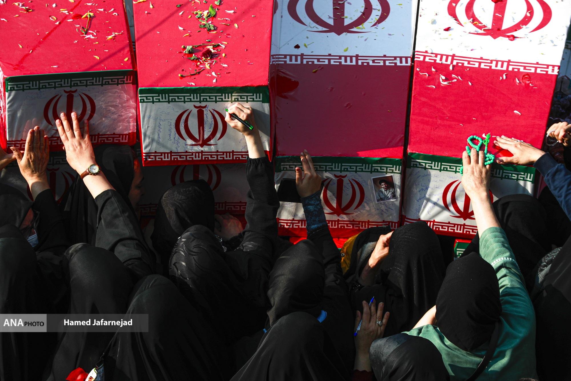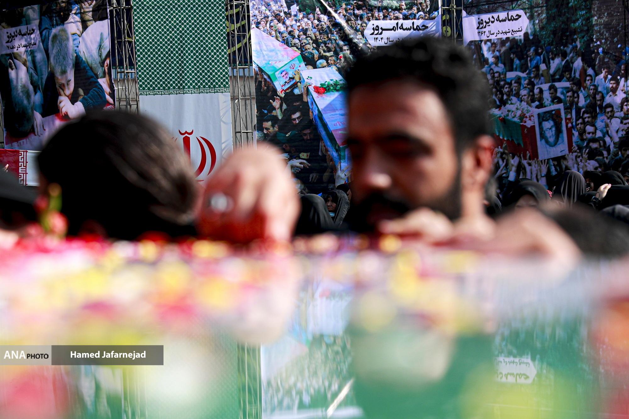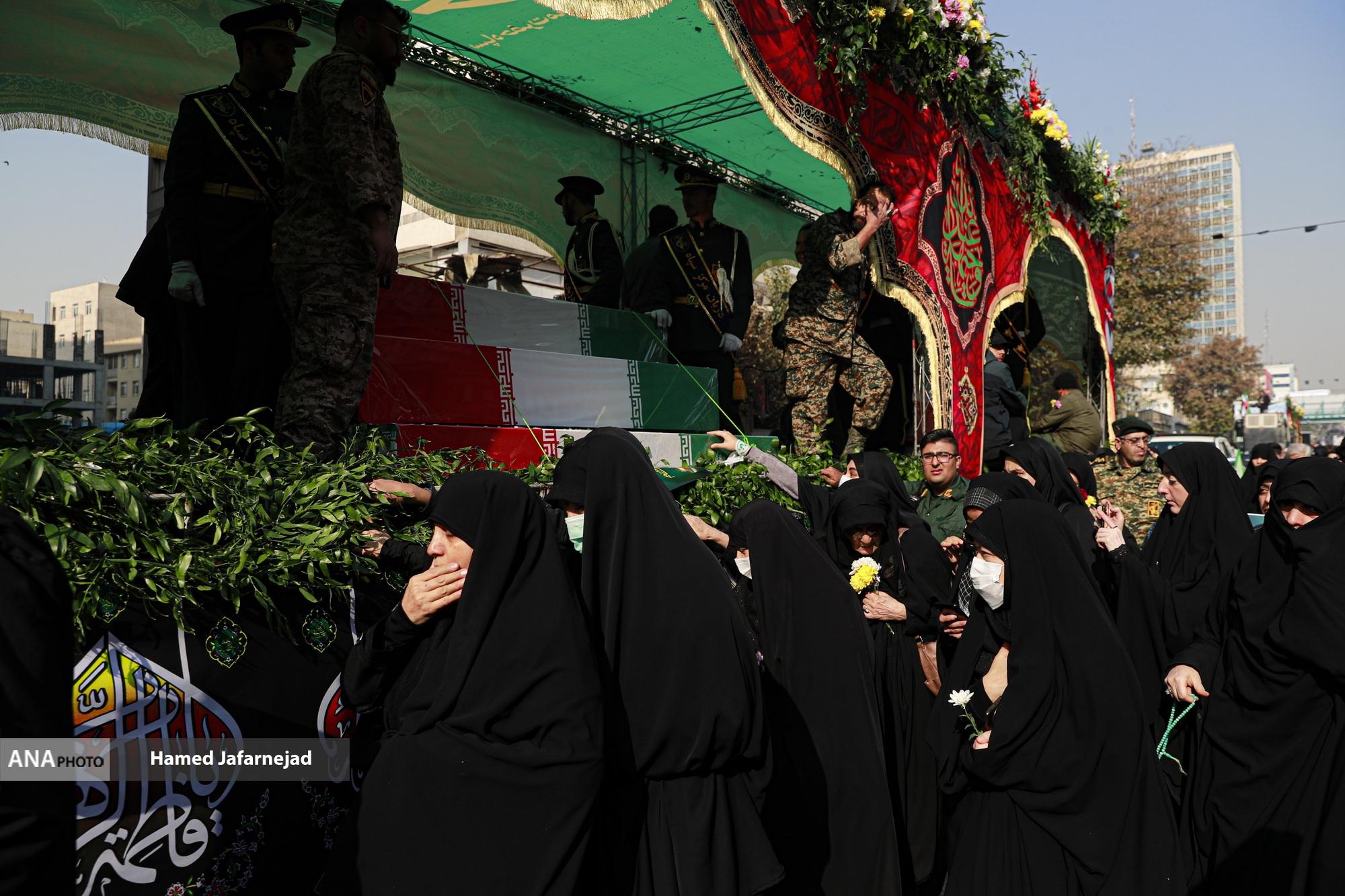 مراسم تشییع پیکر مطهر 100 شهید دوران دفاع مقدس همزمان با سالروز شهادت حضرت فاطمه زهرا(س) صبح امروز دوشنبه در تهران با حضور آحاد مردم از دانشگاه تهران بسمت معراج شهدا تشییع شد.