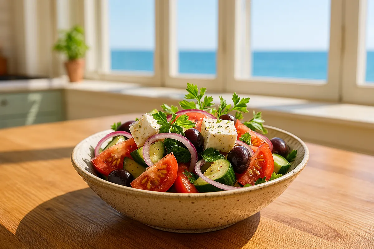 رژیم مدیترانهای بر پایه غذاهای مناطق پیرامون دریای مدیترانه است. این نوع غذاها انواع ویتامینها و مواد مغذی را برای بدن ما فراهم میکنند. این رژیم سرشار از سبزیجات، حبوبات، میوهها، غلات کامل، مغزها و دانهها (از جمله بادام، گردو، تخمه آفتابگردان و تخمه کدو)، مرغ، ماهی و روغن زیتون است.