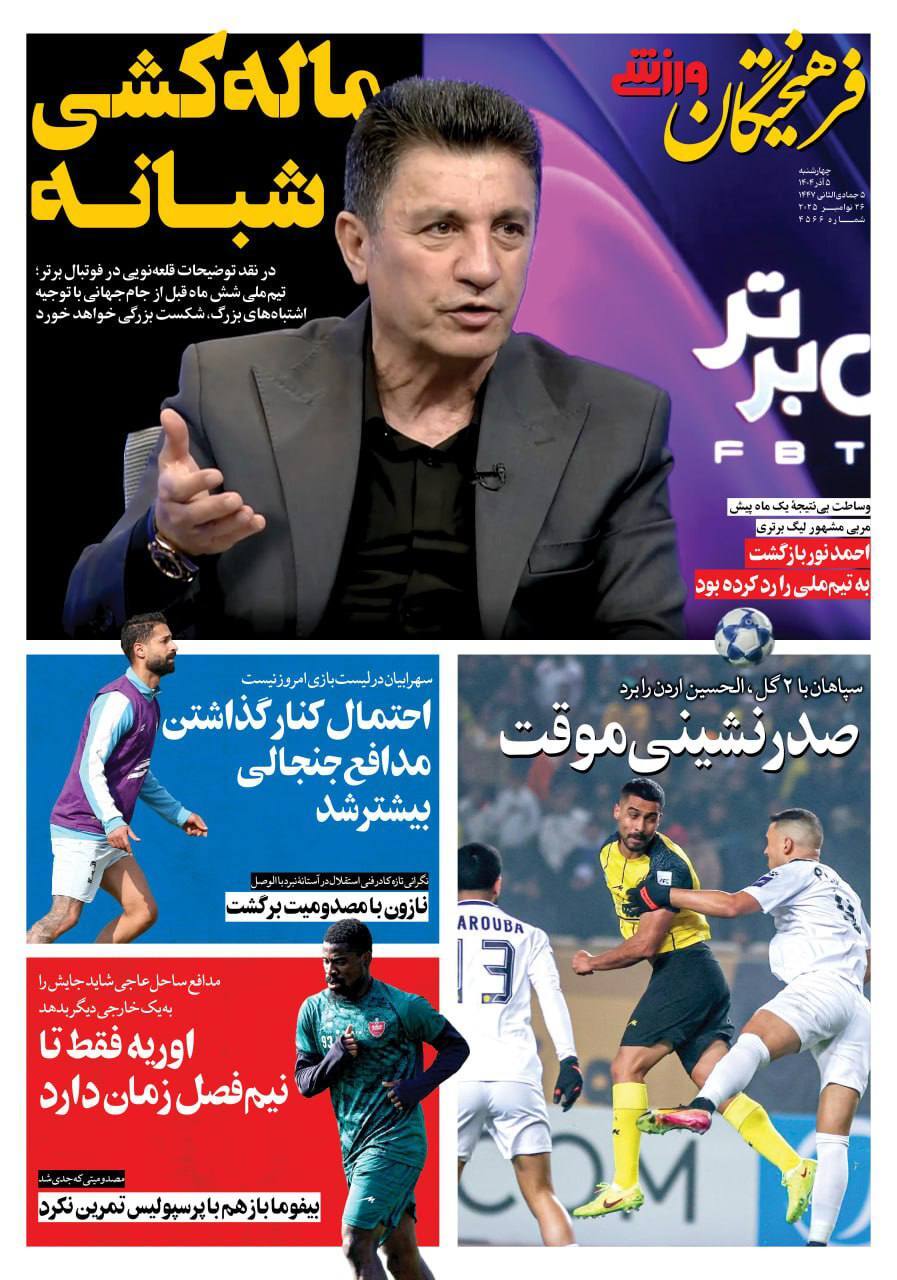 روزنامههای ورزشی چهارشنبه ۵ آذر ماه ۱۴۰۴