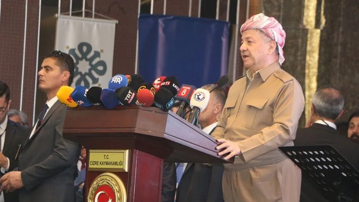 به گزارش خبرگزاری آنا، مسعود بارزانی، رئیس حزب دموکرات اقلیم کردستان عراق که به شرناخ رفته تا در همایش بین المللی دانشگاه جیزره شرکت کند با اشاره به روند مذاکرات صلح کردی-ترکی در ترکیه گفت: از اردوغان، پارلمان و مردم ترکیه برای انتخاب راه صلح که بهترین راه است تشکر میکنیم.