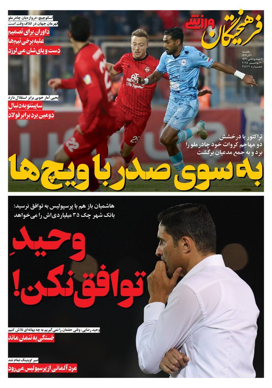 روزنامههای ورزشی یکشنبه ۹ آذر ماه ۱۴۰۴