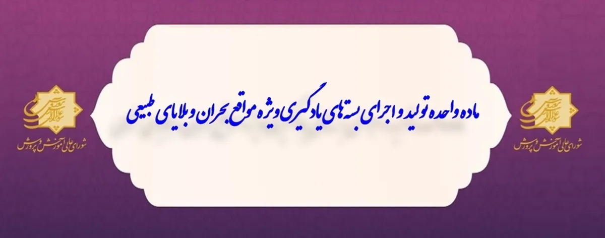ابلاغ ماده واحده تولید و اجرای بسته‌های یادگیری ویژه مواقع بحران و بلایای طبیعی
