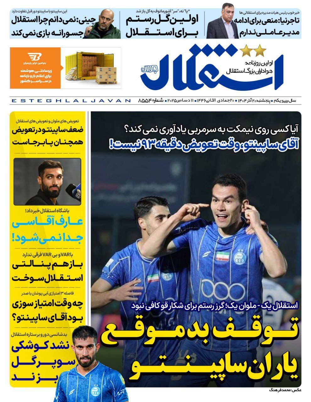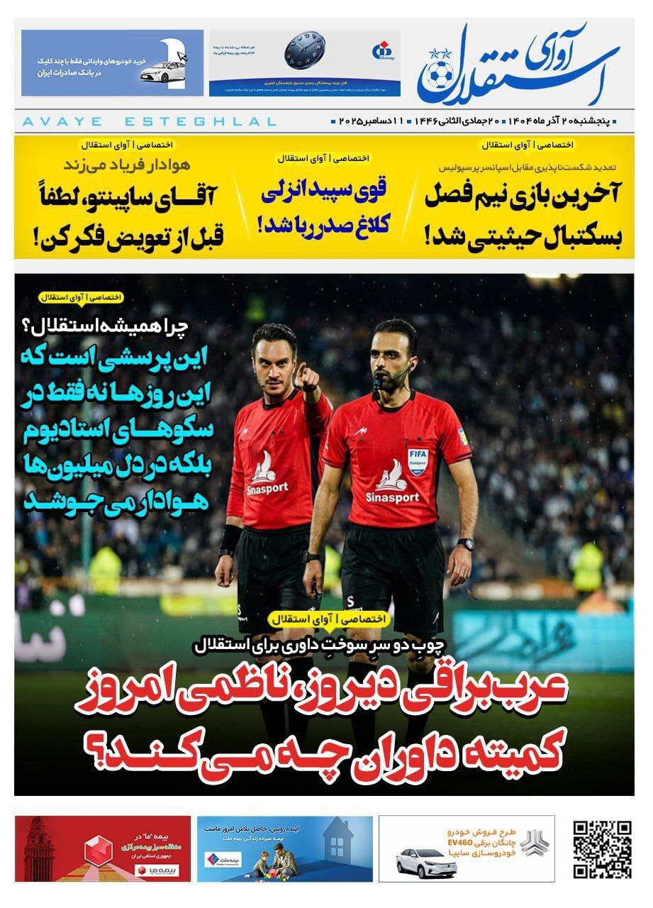 روزنامه های ورزشی پنجشنبه 20 آذر ماه 1404