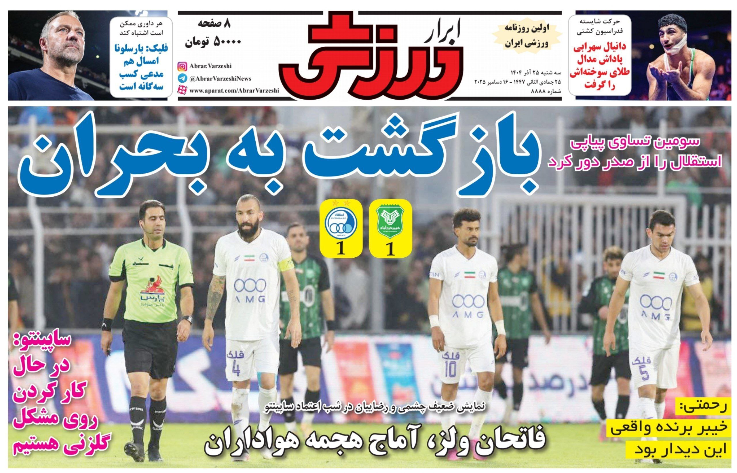 روزنامه های ورزشی سه شنبه ۲۵ آذرماه ۱۴۰۴