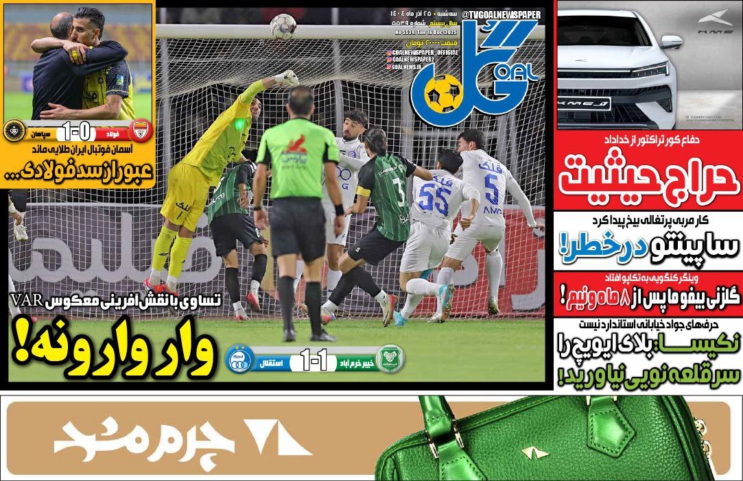 روزنامههای ورزشی چهارشنبه ۲۶ آذر ۱۴۰۴