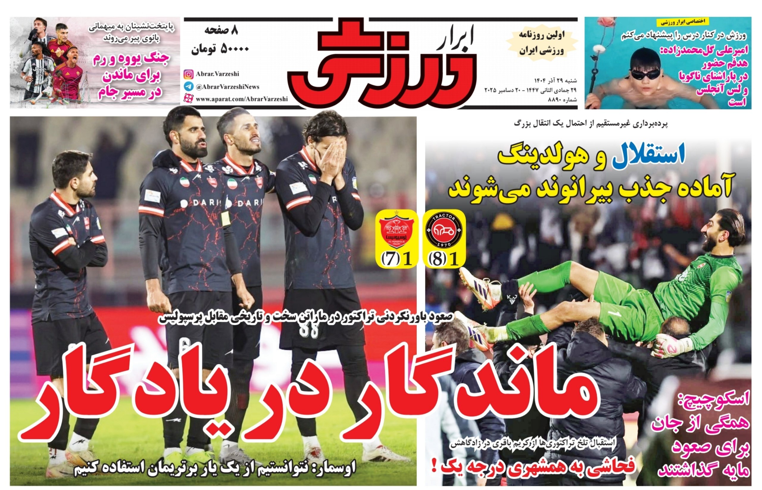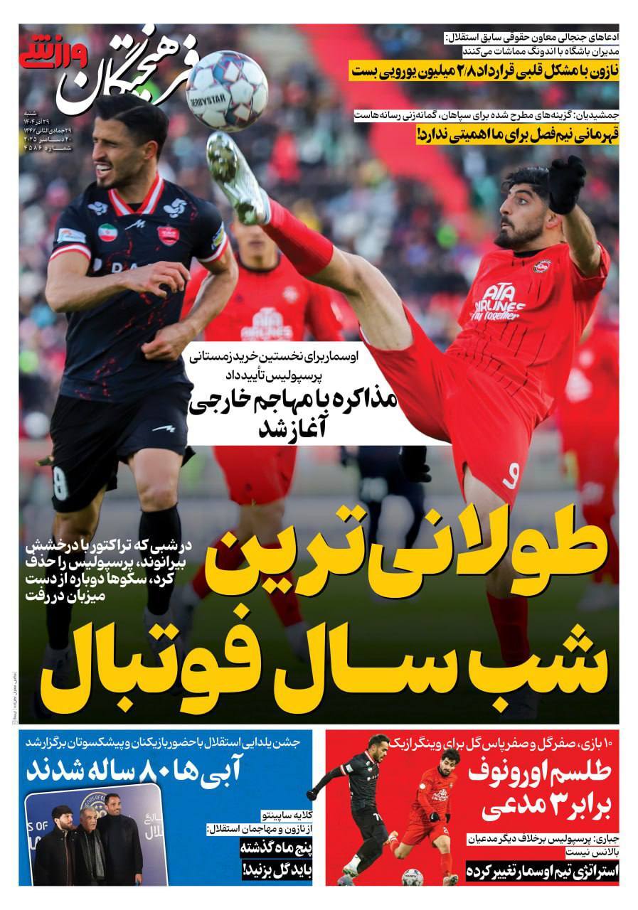 روزنامههای ورزشی شنبه ۲۹ آذر ماه ۱۴۰۴
