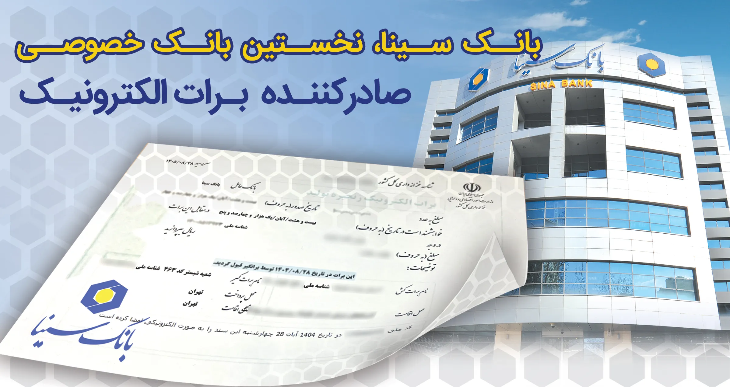 بانک سینا به‌عنوان نخستین بانک خصوصی کشور، صدور برات الکترونیکی زنجیره تولید را به صورت عملیاتی آغاز و نام خود را در فهرست بانک‌های فعال این ابزار نوین تأمین مالی ثبت کرد.