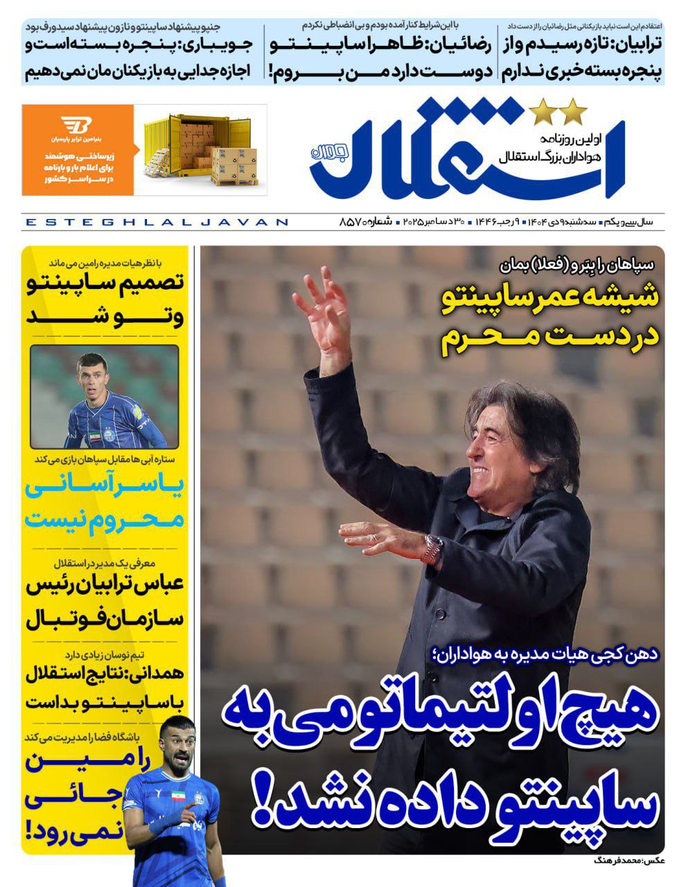 روزنامه‌های ورزشی سه‌شنبه ۹ دی ماه ۱۴۰۴
