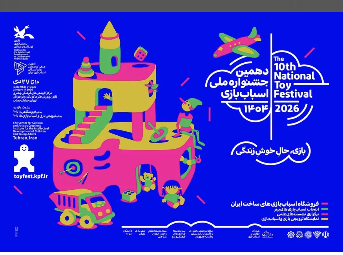 دهمین جشنواره ملی اسباببازی کانون از روز ۱۰ تا ۲۷ دی ۱۴۰۴ در مرکز آفرینشهای فرهنگی هنری کانون پرورش فکری کودکان و نوجوانان واقع در خیابان حجاب تهران از ساعت ۱۱ تا ۲۰ برگزار میشود.