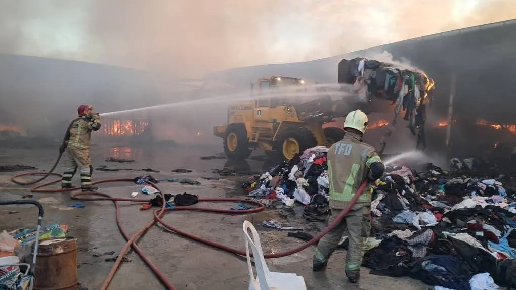 آتشسوزی گسترده در انبار لباس جاده ورامین مهار شد/ عملیات لکهگیری ادامه دارد+ فیلم
