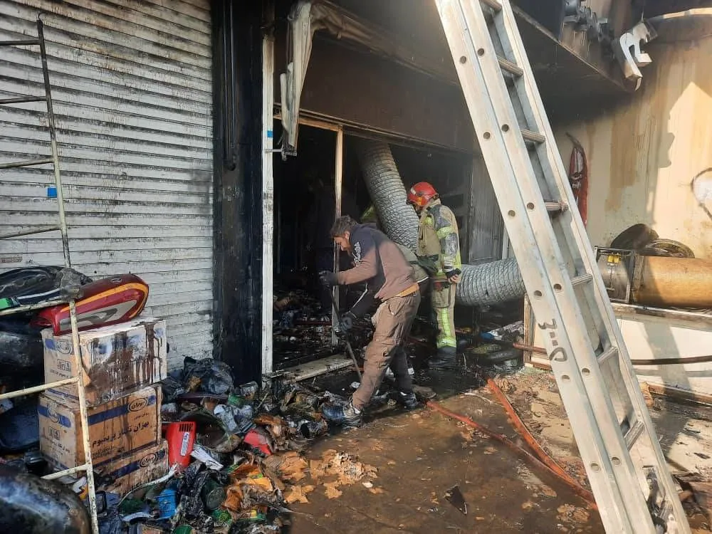 مهار آتشسوزی مغازه لوازم یدکی موتورسیکلت در میدان قیام+ فیلم
