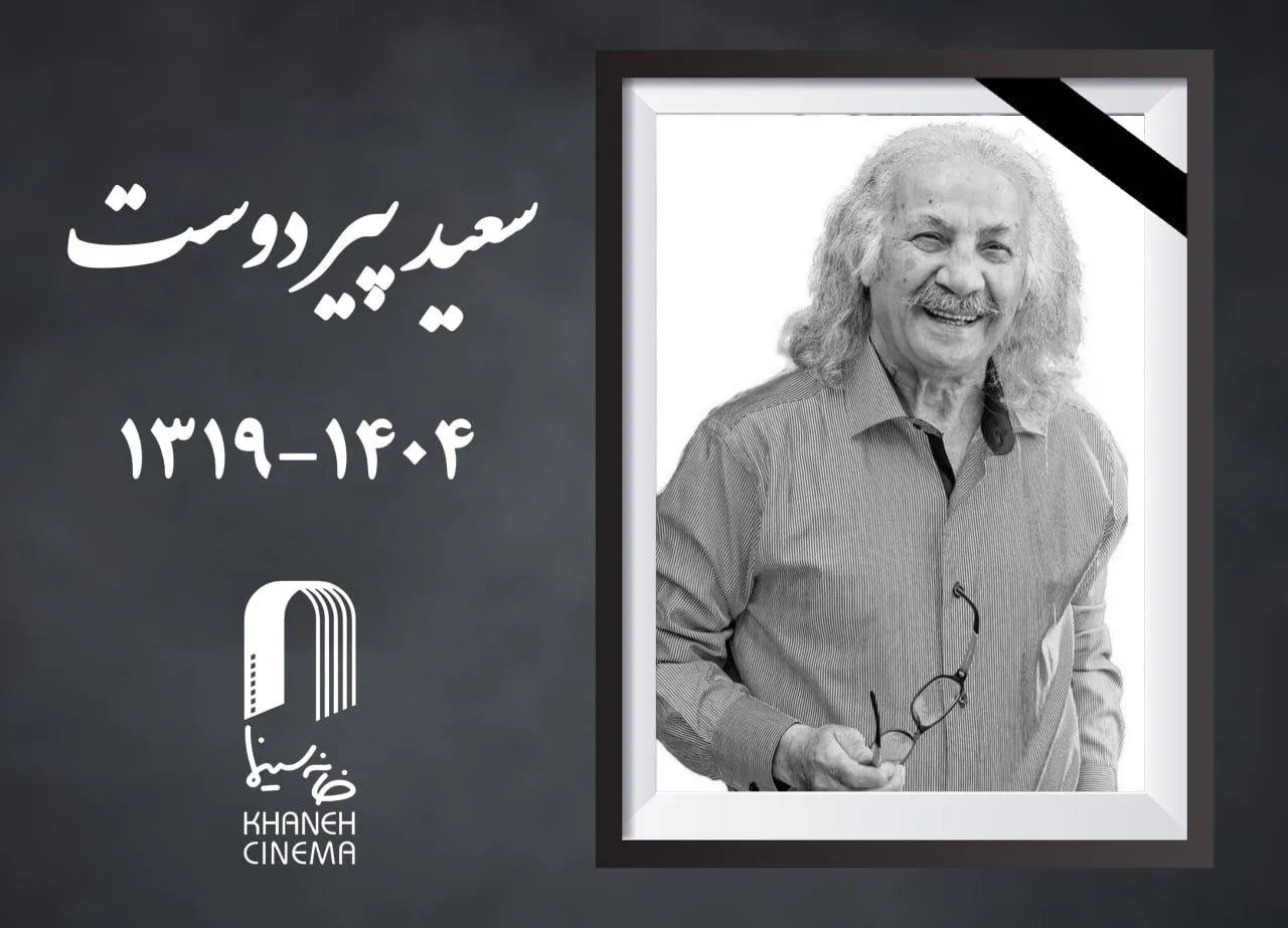 به گزارش خبرگزاری آنا به نقل از روابط عمومی خانه سینما، مراسم خاکسپاری زنده یاد «سعید پیردوست» بازیگر سینما و تلویزیون پنجشنبه ۱۰ صبح در قطعه هنرمندان بهشت زهرا برگزار میشود.
