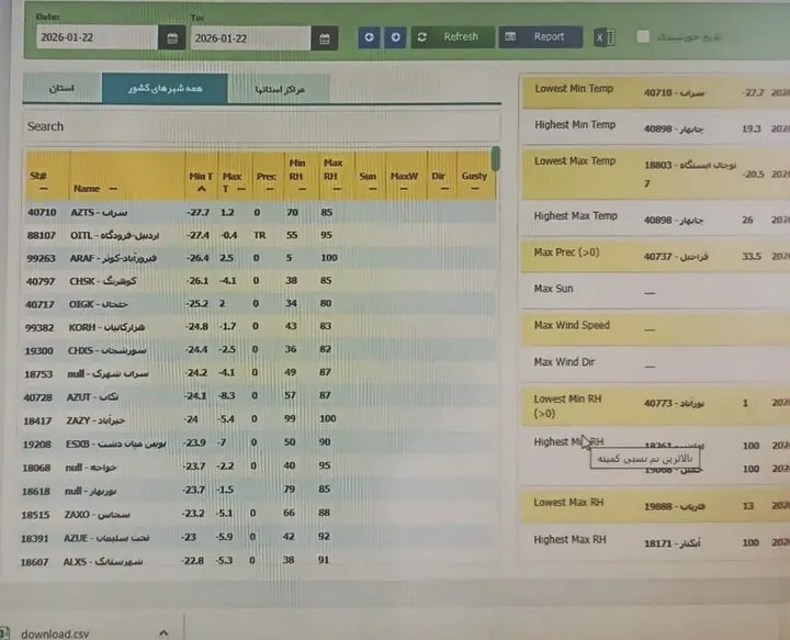 سحرگاه دوم بهمن‌ماه ۱۴۰۴، دمای بی‌سابقه منفی ۲۸ درجه سانتی‌گراد در شهر سراب ثبت شد.