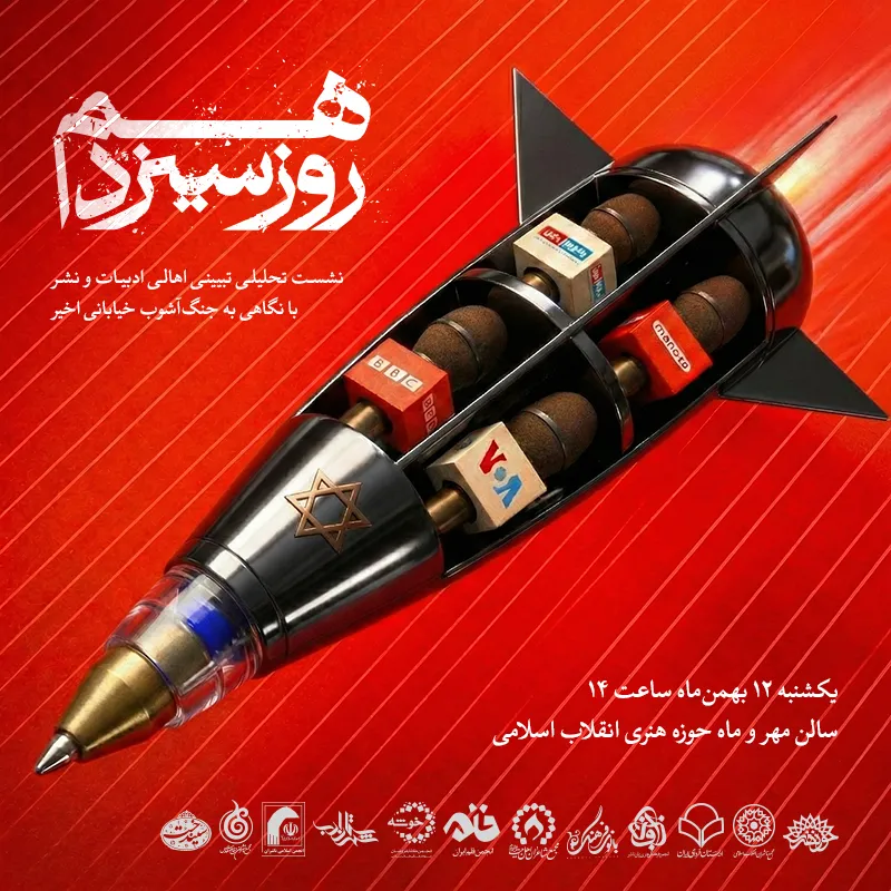 به گزارش خبرنگار خبرگزاری آنا، نشست «روز سیزدهم» با هدف بررسی و واکاوی جنگ آشوب اخیر جبهه آمریکایی صهیونیستی علیه ایران اسلامی و تجدید عهد و پیمان با آرمان‌های والای انقلاب اسلامی، روز یکشنبه ۱۲ بهمن‌ماه ساعت ۱۴ با حضور جمعی از اهالی فرهنگ و نشر در حوزه هنری انقلاب اسلامی برگزار می‌شود.