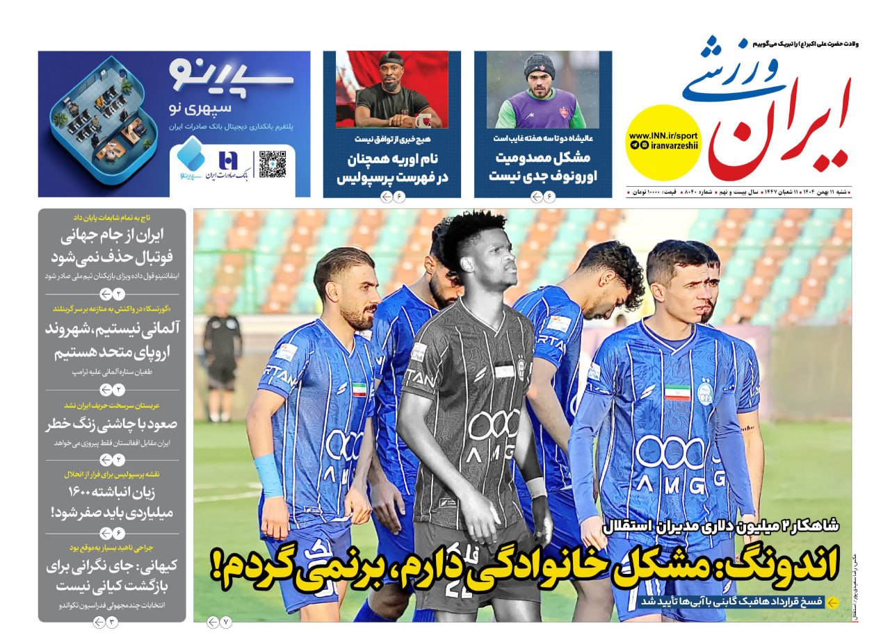 روزنامههای ورزشی شنبه ۱۱ بهمن ۱۴۰۴