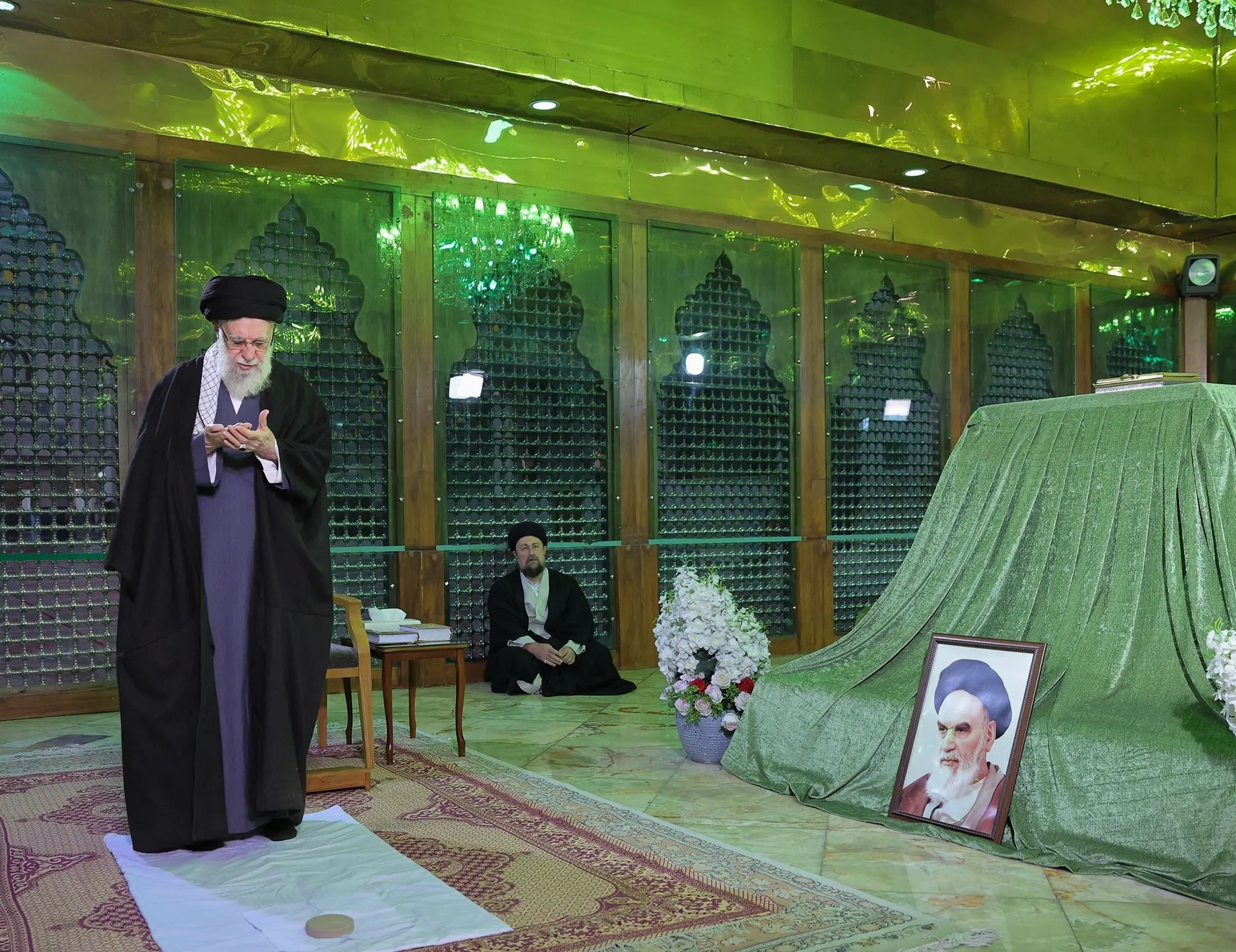 حضرت آیت‌الله خامنه‌ای ضمن قرائت فاتحه و اقامه نماز در مرقد امام خمینی رحمه‌الله، برای روح آن امام کبیر و مجاهد و شهدای انقلاب، علوّ درجات مسئلت کردند.