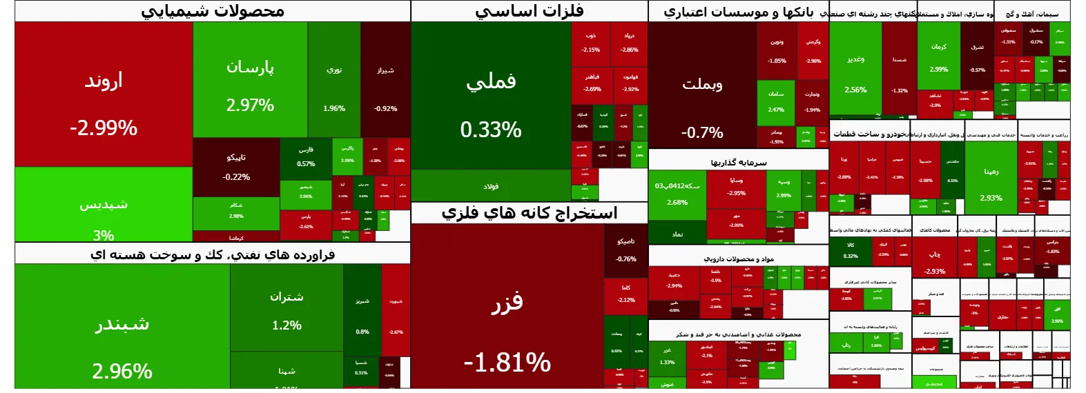شاخص کل فرابورس ایران نیز امروز با ۱۷۴ واحد کاهش به ۳۰ هزار و ۳ واحد رسید.