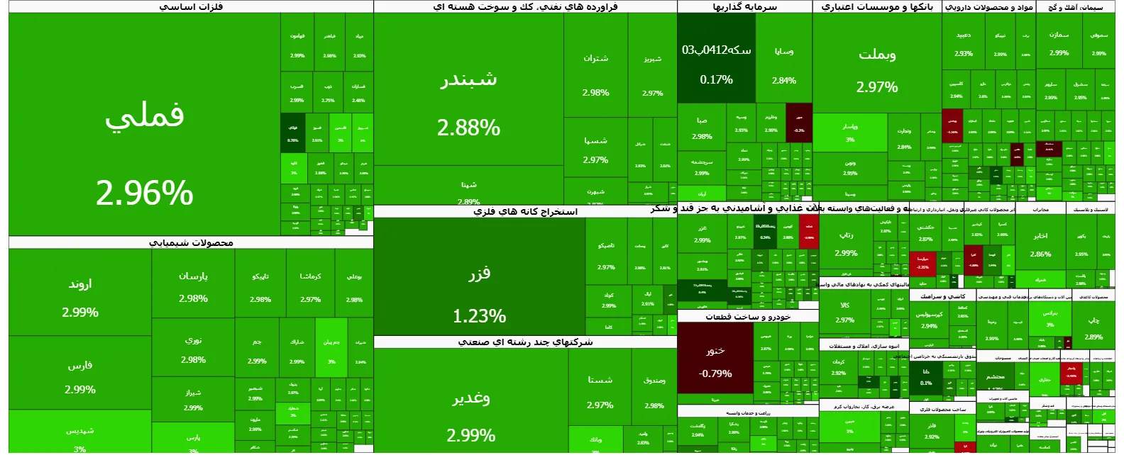 به گزارش خبرگزاری آنا؛ شاخص کل بورس تهران در پایان معاملات شنبه ۱۸ بهمن با افزایش ۱۰۴ هزار و ۶۴۰ واحدی تا تراز ۴ میلیون و ۱۶۳ هزار واحد افزایش یافت و شاخص هم وزن ۲۲ هزار و ۸۳۴ واحد افزایش یافت و به تراز یک میلیون و ۳۵ هزار واحد رسید.