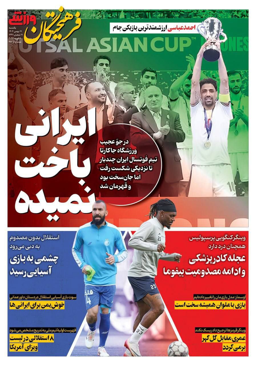 روزنامههای ورزشی یکشنبه ۱۹ بهمن ماه ۱۴۰۴