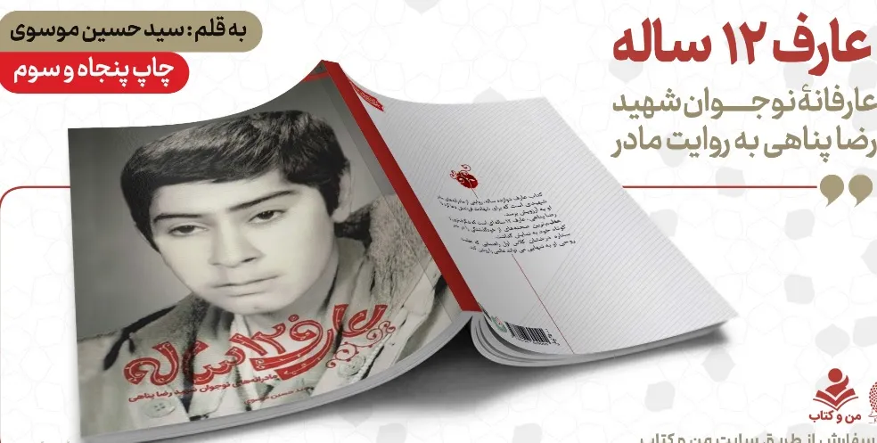 به گزارش خبرنگار خبرگزاری آنا، کتاب «عارف ۱۲ ساله» اثر سید حسین موسوی شامل خاطرات شهید رضا پناهی، کمسنوسالترین شهید دوران دفاع مقدس به روایت مادر است.رضا پناهی، عارف ۱۲ سالهای است که شگرفترین و عظیمترین صحنههای از خودگذشتگی را در عمر کوتاه خود به نمایش گذاشت. ستاره درخشان کلاس اول راهنمایی که عظمت روحی او به تنهایی می تواند عالمی را روشن کند. او سال ۱۳۴۸ در شهرستان کرج متولد شد. در سن ۱۲ سالگی خانواده را راضی کرد تا به جبهه برود. پس از جلب رضایت پدر و مادرش فرم تقاضای اعزام به جبهه را پر کرد ولی به خاطر سن کم از رفتن او ممانعت شد، شناسنامهاش را دستکاری کرد تا توانست وارد جبهه شود.