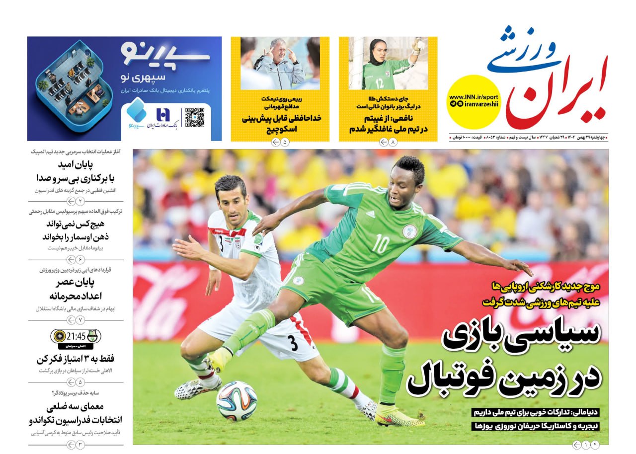 روزنامههای ورزشی چهارشنبه ۲۹ بهمن