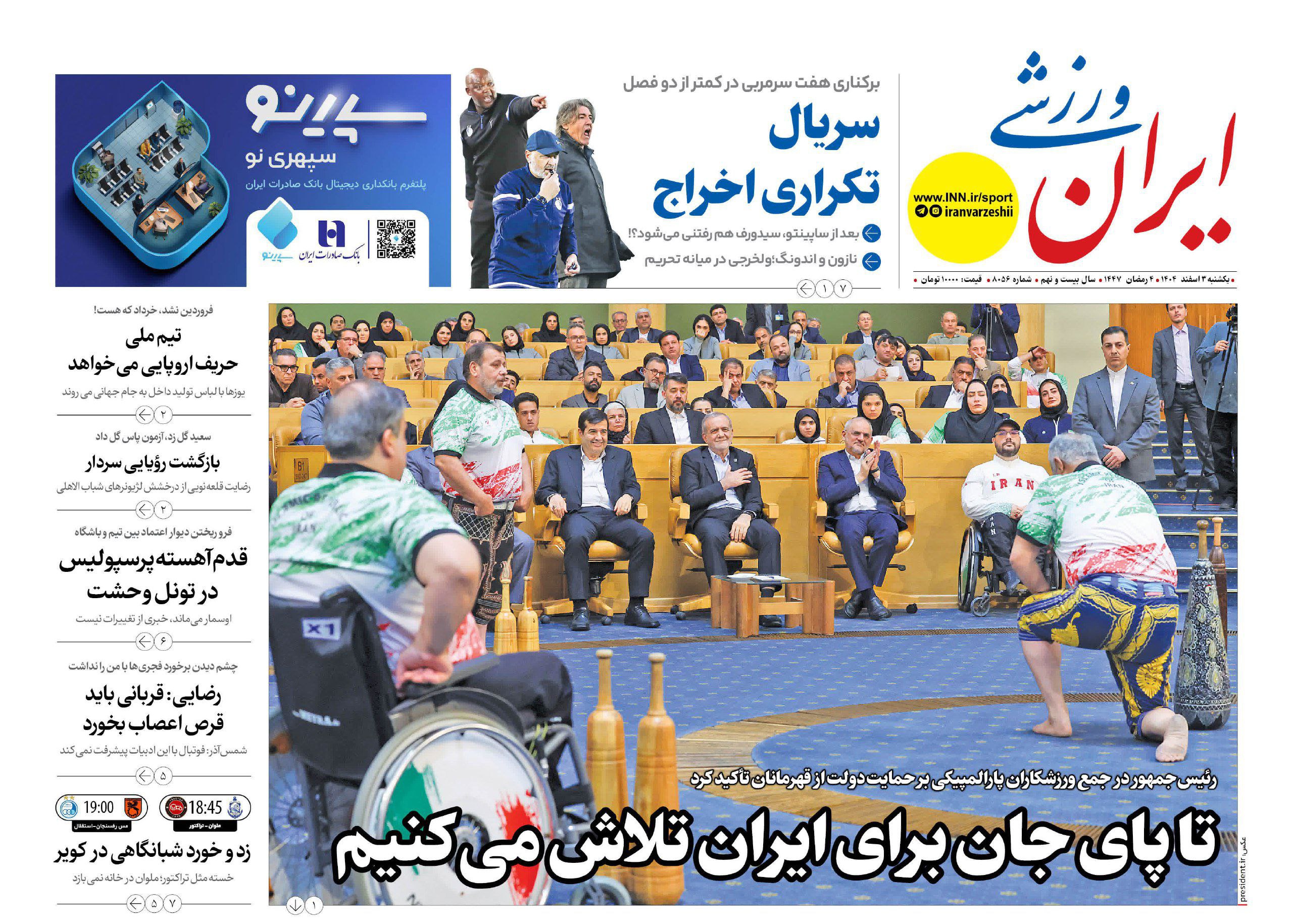روزنامههای ورزشی یکشنبه ۳ اسفند ۱۴۰۴