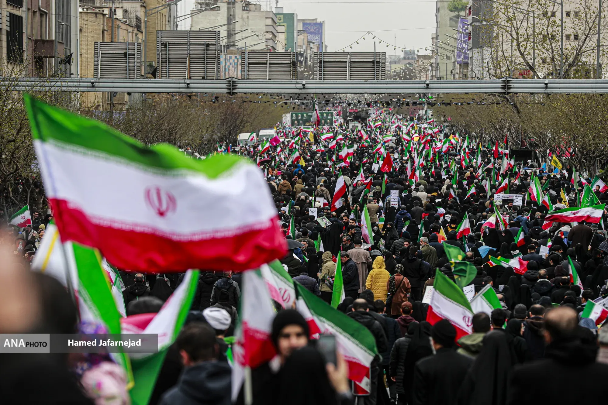 هزاران نفر از مردم روزه دار تهران از اقشار مختلف همراه با پرچم ایران و پلاکاردهای حاوی شعارهای حمایت از فلسطین به سمت محل برگزاری نماز جمعه حرکت کردند