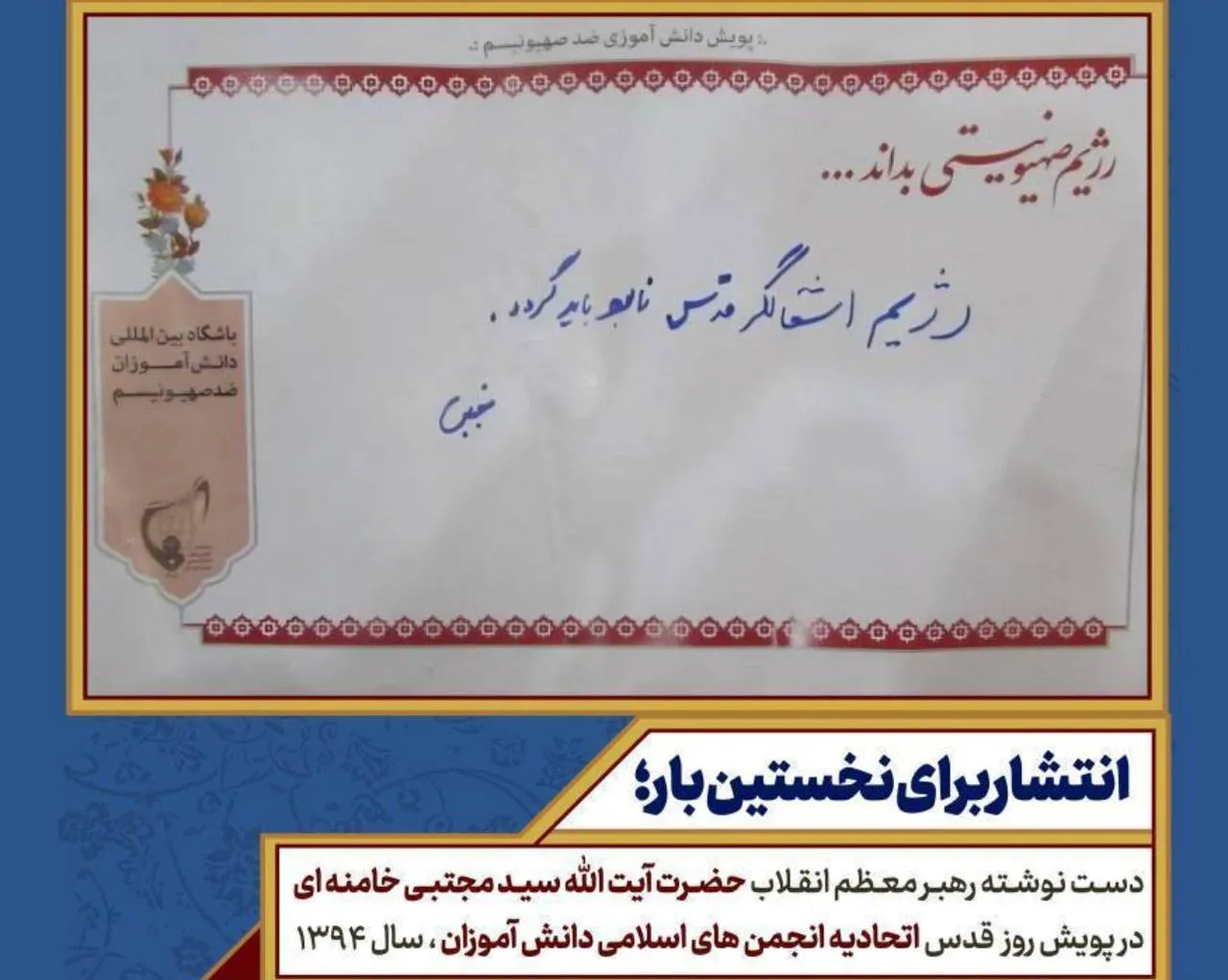 دستنوشته رهبر انقلاب در پویش روز قدس اتحادیه انجمنهای اسلامی دانش آموزان