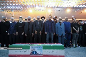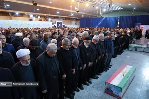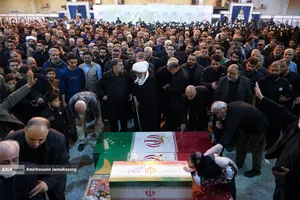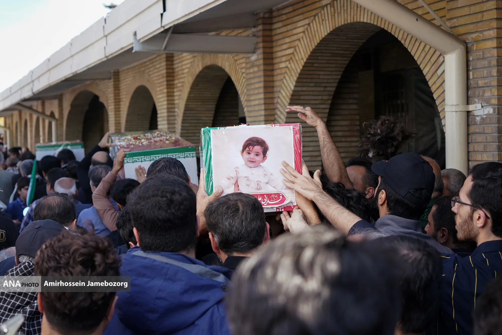 مراسم تشییع شهیدان سیدکمال خرازی وزیر اسبق امور خارجه و نوزاد ۱۰ ماهه شهید امیرحسین اشرفی به همراه خانواده معظم شهید در قطعه ۴۲ بهشت زهرای تهران برگزار شد.