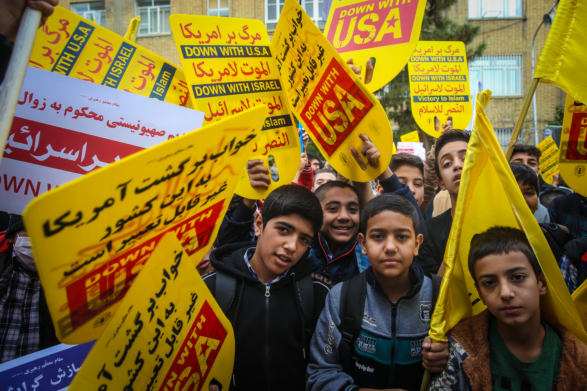 راهپیمایی یوم الله ۱۳ آبان، صبح امروز با حضور دانش آموزان، دانشجویان و اقشار مختلف مردم در مقابل لانه جاسوسی آمریکا در تهران برگزار شد.