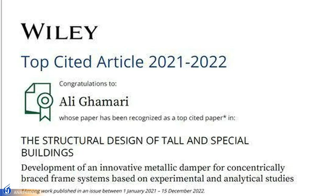 به گزارش خبرنگار خبرگزاری علم و فناوری آنا، مقاله علی قمری عضو هیئت علمی گروه عمران دانشگاه آزاد اسلامی واحد ایلام بهعنوان مقاله با بیشترین ارجاع علمی سال ۲۰۲۱ تا ۲۰۲۲ در مجله Q۱ (The Structural Design of Tall and Special Buildings) برگزیده شد.