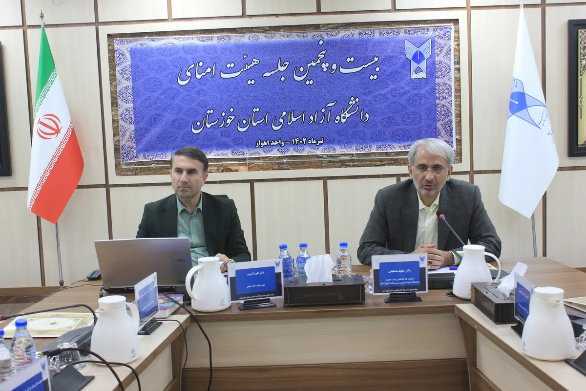 به گزارش خبرنگار گروه آموزش و دانشگاه خبرگزاری علم و فناوری آنا، بیست و پنجمین جلسه هیئت امنای دانشگاه آزاد اسلامی استان خوزستان با حضور مجید مشکینی نماینده تامالاختیار رئیس و معاون تحقیقات، نوآوری و فناوری دانشگاه آزاد اسلامی، علی افروس رئیس دانشگاه آزاد خوزستان و سایر اعضای رسمی این جلسه در دانشگاه آزاد اسلامی واحد اهواز برگزار شد.