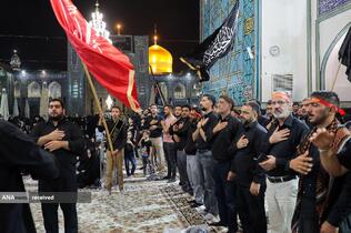 همزمان با شب تاسوعای حسینی(ع) ،دسته هیئت دانشجویی در حرم مطهر رضوی حضور یافته و به عزاداری پرداختند.
