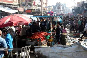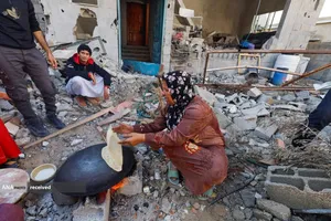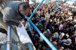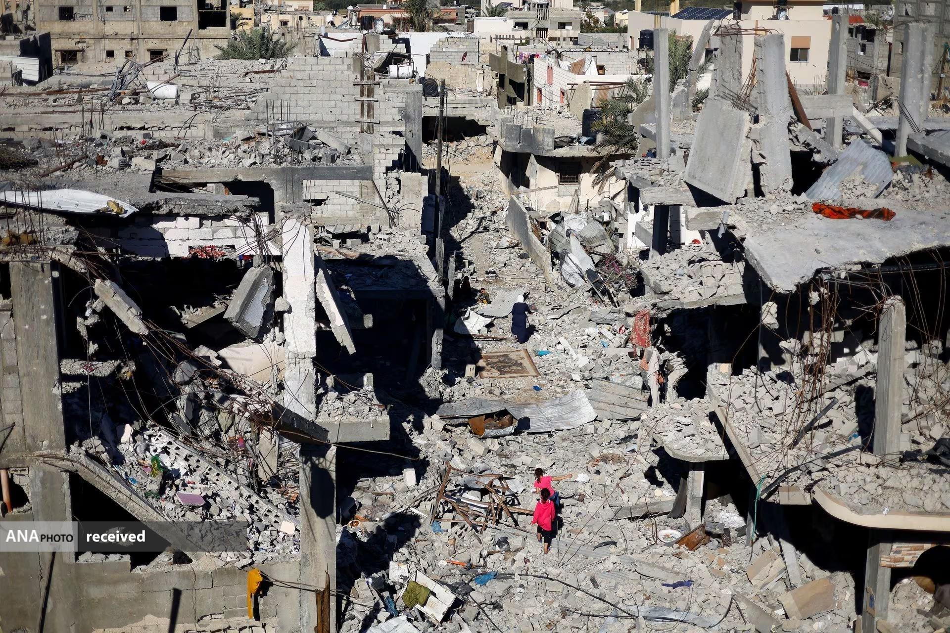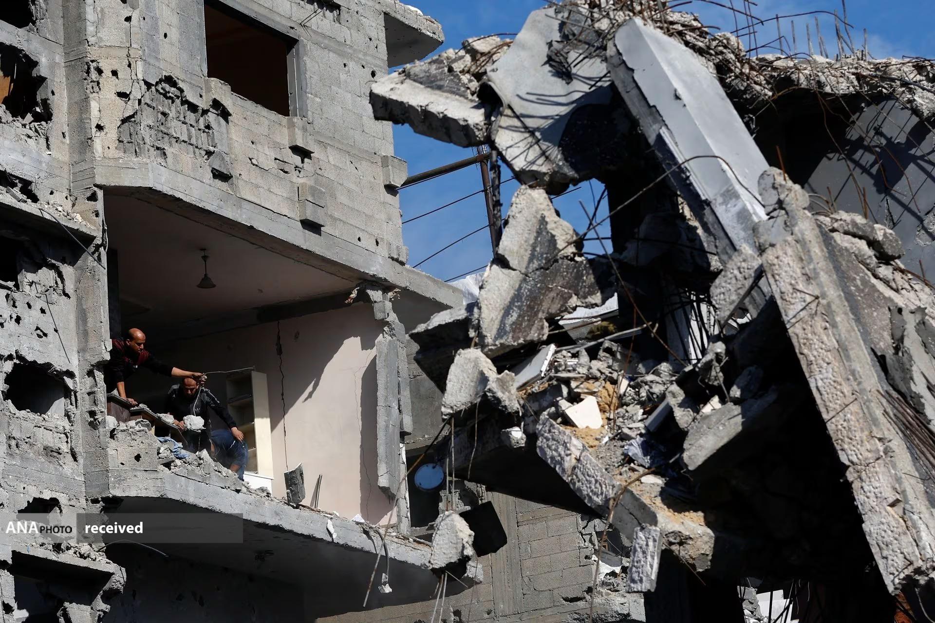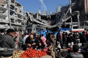 فلسطینیان آواره از جنگ رژیم صهیونیستی در جنوب نوار غزه طی آتشبس هفت روزه و در میان آوار ساختمانهای ویران شده در اثر بمباران به منظور دریافت کمکهای اولیه و خرید اقلام مورد نیاز به بازار خانیونس مراجعه کردند.