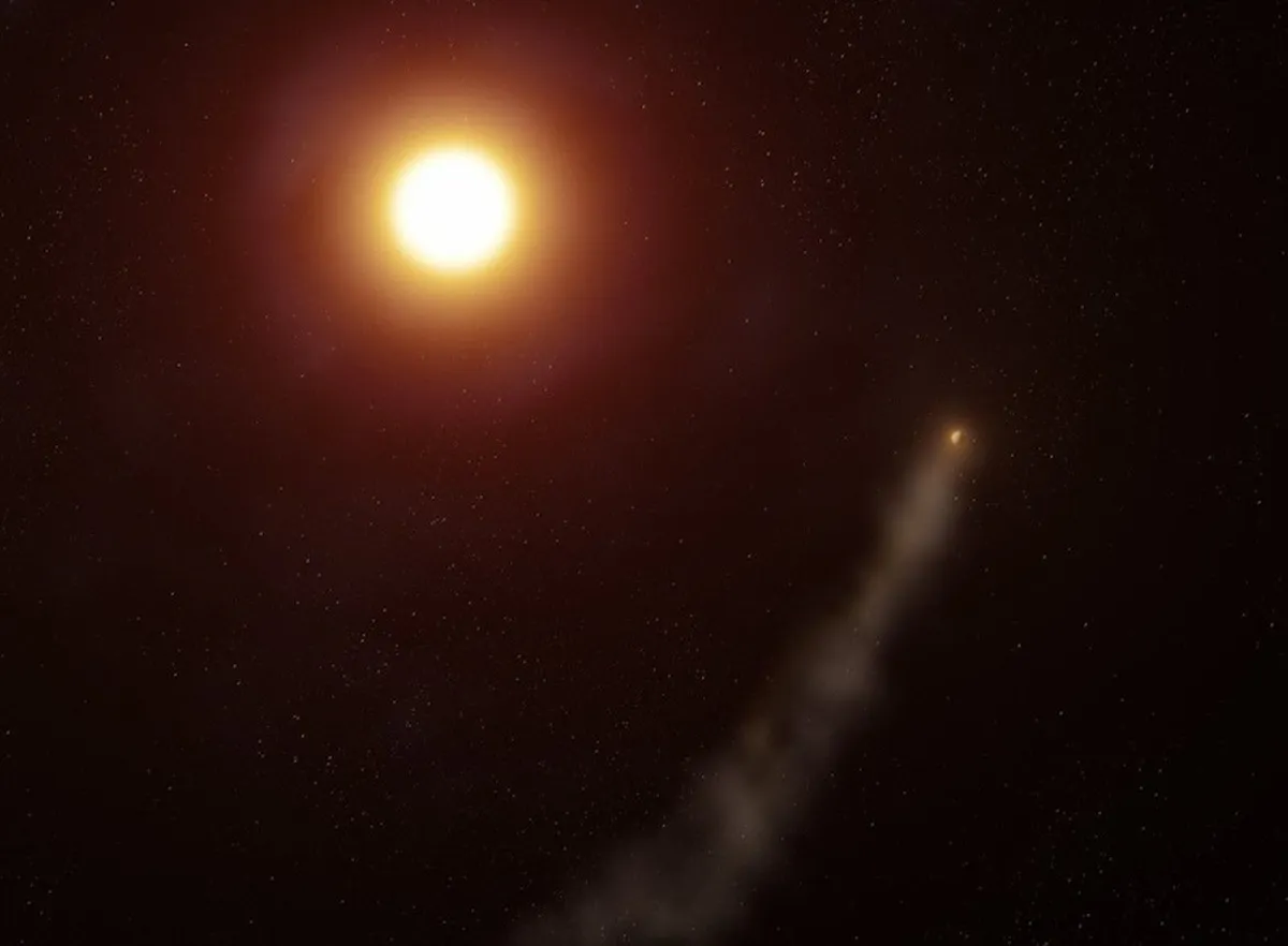 محققان کشف کردند که با فرار اتمسفر این سیاره به سوی فضا، بادهای ستاره مادریاش- بسیار شبیه بادهای خورشید خودمان - آن را به دمی شبیه دم دنبالهدارها تبدیل میکند.