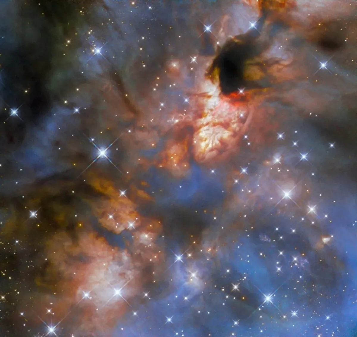 به احتمال زیاد در مرکز تصویر یک ستاره پرجرم، که حدود ۳۰ برابر خورشید جرم دارد، واقع است که هنوز به طور کامل شکل نگرفته. ابرهای سایهدار تاریک به نظر میرسند، زیرا غبار بسیار زیادی در این منطقه پراکنده است که نور را پنهان کرده و مانع مشاهده طول موجهای نزدیک به فروسرخ توسط هابل میشود. با این حال، طول موج فروسرخ نزدیک، عمدتاً از دو طرف - سمت چپ بالا و پایین سمت راست - دریافت میشود، جایی که یک جت قدرتمند پرتاب شده از پیشستاره عظیم، غبار فضایی را از بین برده است. تصاویری که در چند طول موج مختلف ثبت میشوند، مانند این صحنه باورنکردنی هابل، به ما کمک میکند تا درک بهتری از نحوه شکلگیری پرجرمترین و درخشانترین ستارگان در کهکشان راه شیری به دست آوریم.
