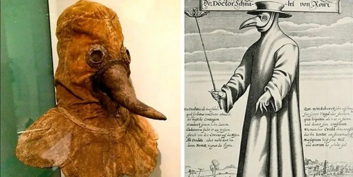 پزشکان متخصص طاعون، با ماسک منقاری و لباسی مانند لباس جادوگران ظاهر می‌شدند. این لباس متشکل از یک کلاه با روزنه‌ای برای بینایی و یک منقار پر از ترکیباتی از گیاهان دارویی (مانند دارچین، تربانتین، فلفل، گداز مس و...) بود که تصور می‌شد هوای آلوده را دفع می‌کند. روپوش چرمی روغنی، چکمه‌ها و دستکش‌ نیز وجود داشت تا بیماری از منافذ پوست وارد نشود.