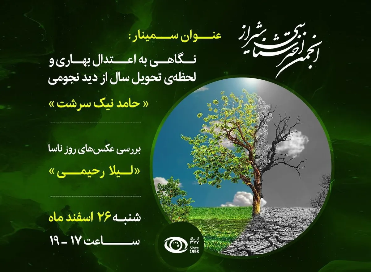 انجمن اخترشناسی شیراز نشستی نجومی را با محوریت اعتدال بهاری و بررسی لحظه‌ تحویل سال برگزار می‌کند.