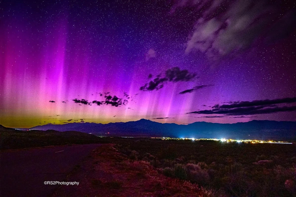عکاس این تصویر راس استون (Ross Stone) از بیگ پاین کالیفرنیا این تصویر را ثبت کرده است. او در رابطه با این عکس میگوید: «هرگز فکر نمی کردم که شفق قطبی را تا این حد در جنوب ببینم. من هیجان زده بودم که ببینم امشب چه اتفاقی میافتد! من از دوربین Canon 90D با لنز Rokinon 10mm f2.8 استفاده کردم. تنظیمات نوردهی،هایلایت و سایهها را انجام دادهام.»